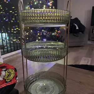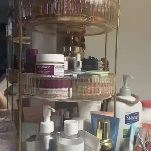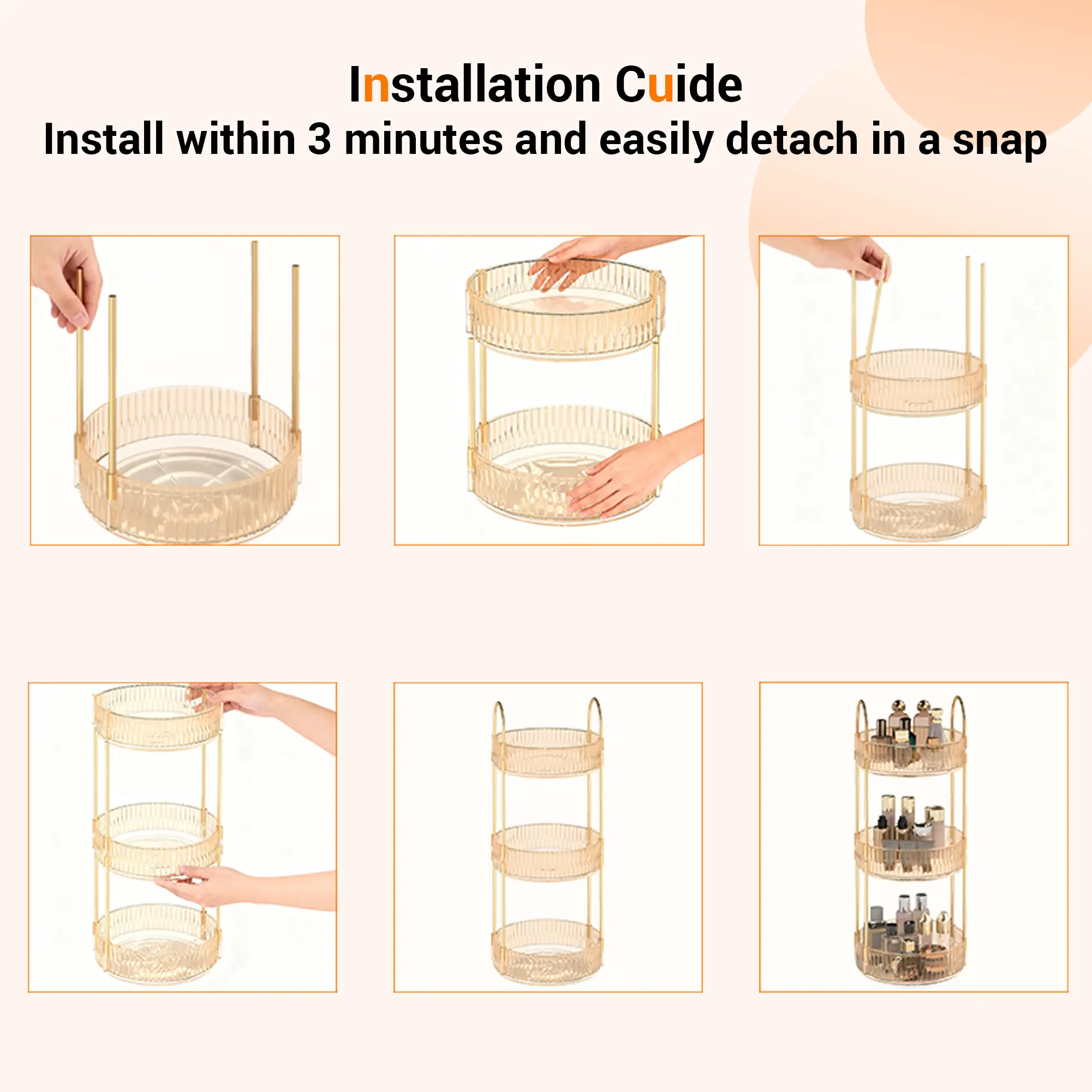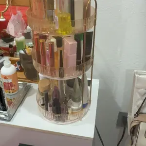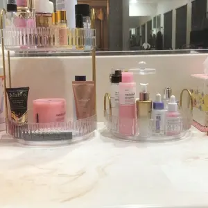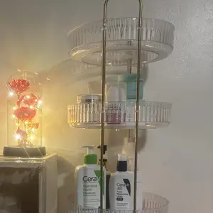 ·【Easy to Install & Durable】The rotating display organizador is constructed with robust ABS plastic and features a sturdy gold metal holder, ensuring the makeup stand exceptional strength and durability. With this reliable design, your items are safeguarded against shaking or tipping over. Moreover, assembling the cosmetic display case is a breeze, taking just 1 minute to set up!