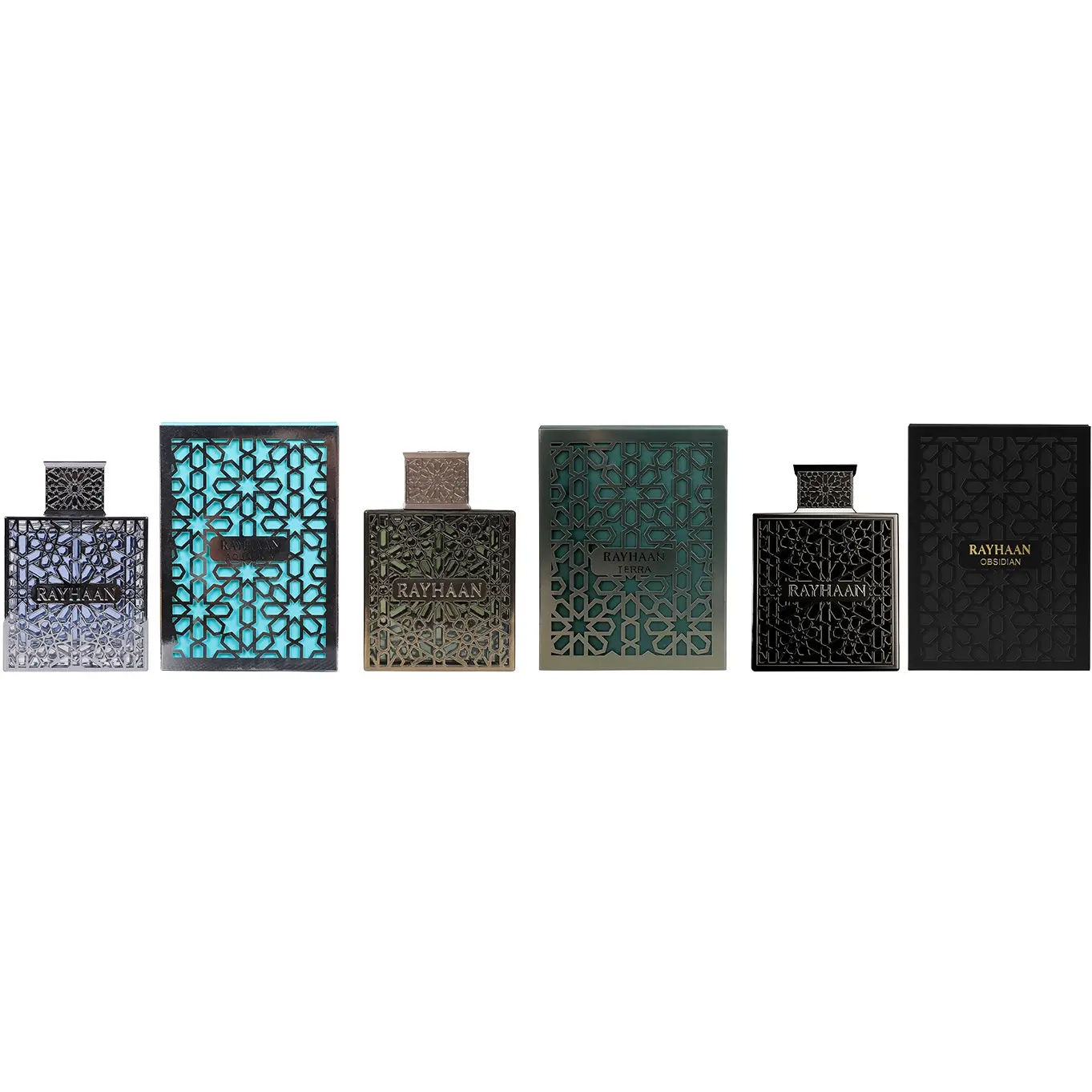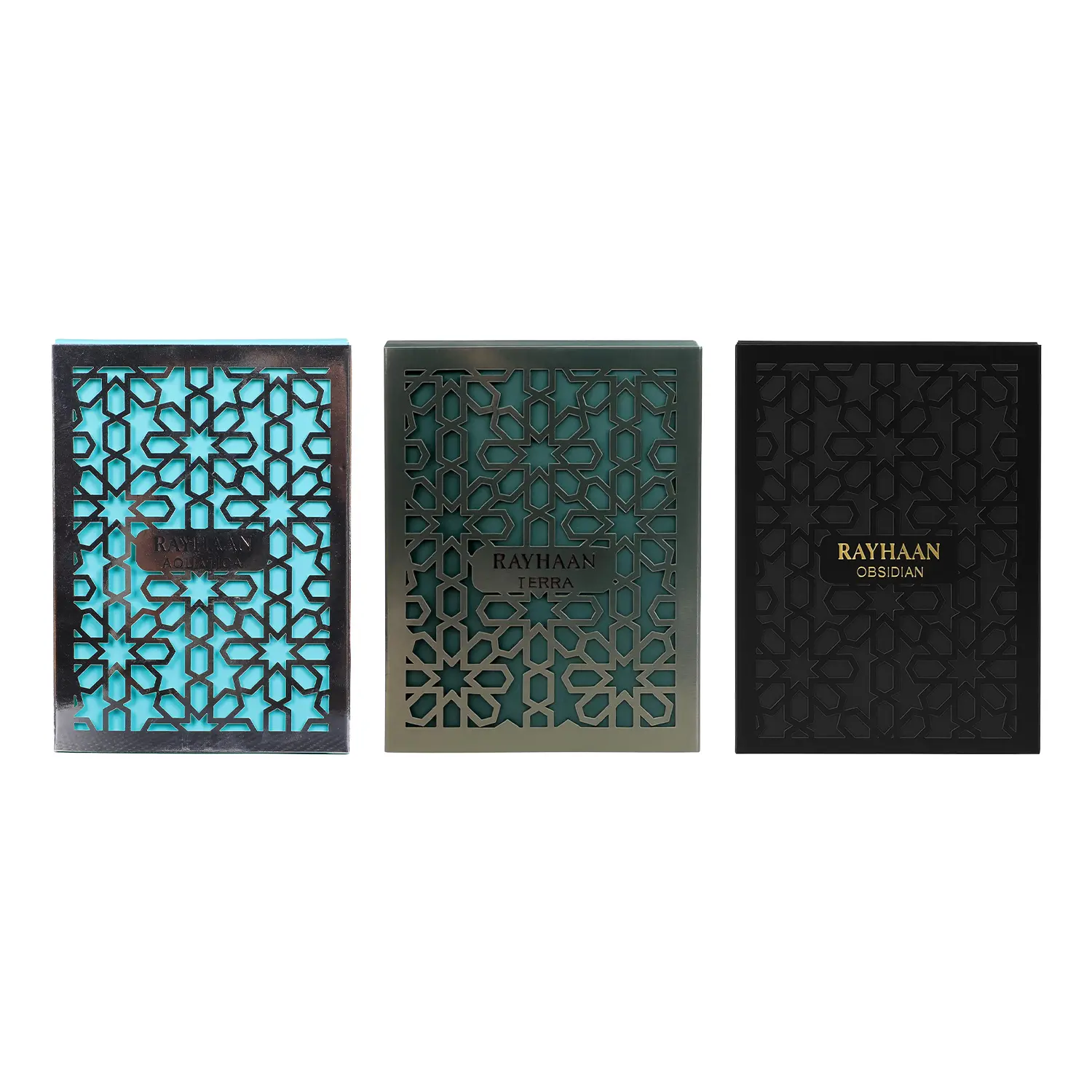 Rayhaan 3 Piece New Launch Bundle for Unisex (Aquatica – Terra – Obsidian) | 3 x 3.4 Ounce Eau de Parfum