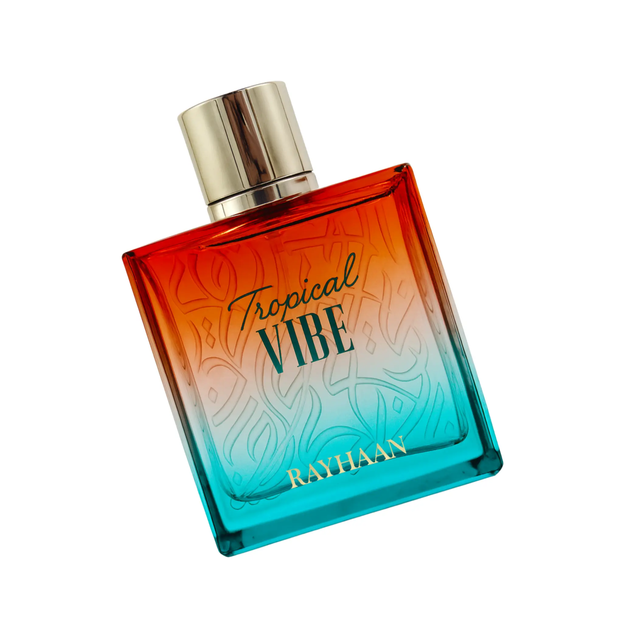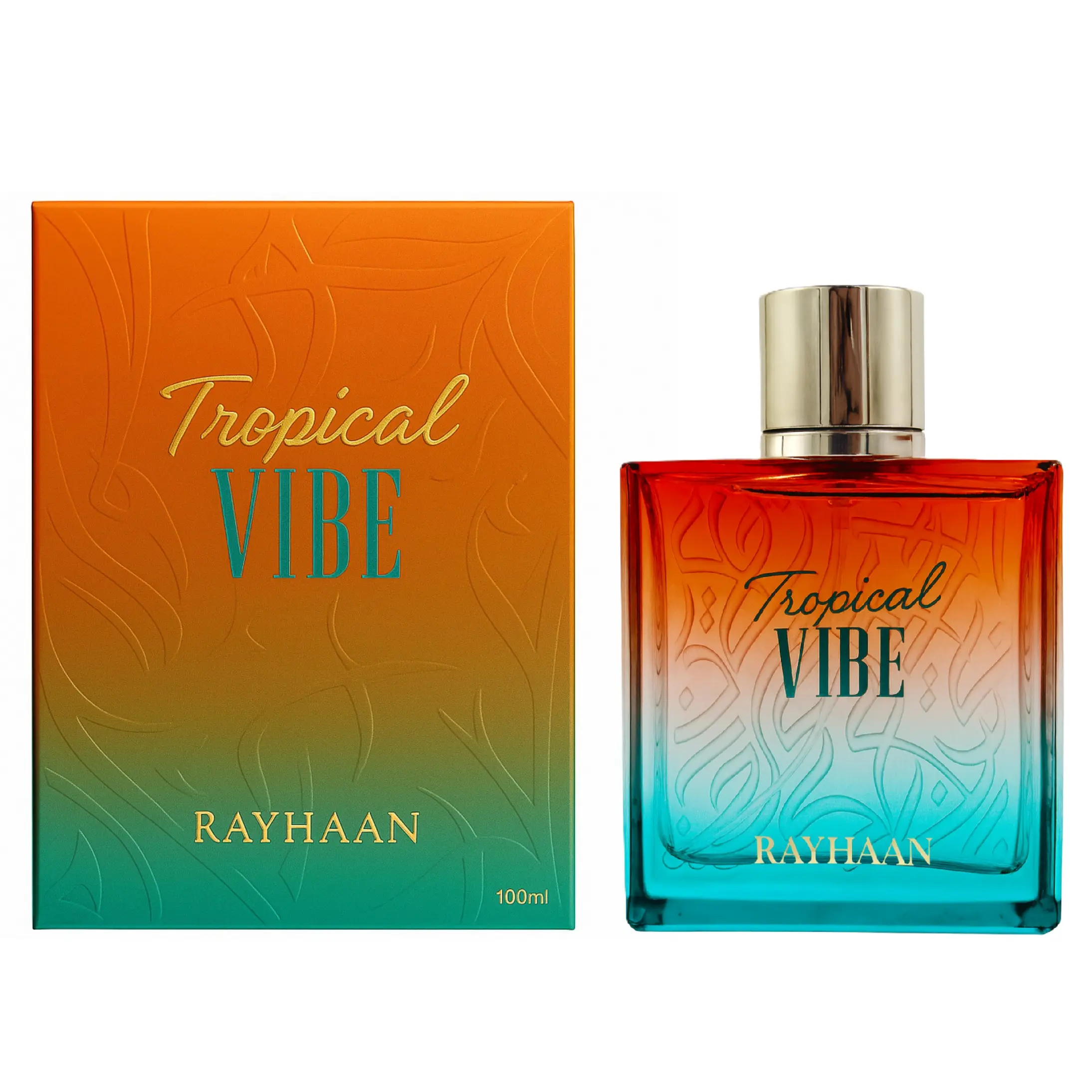 Discover Rayhaan Tropical Vibe — a refreshing unisex perfume that transports you to paradise with every spray. Perfect for lovers of tropical, fruity, and woody scents.