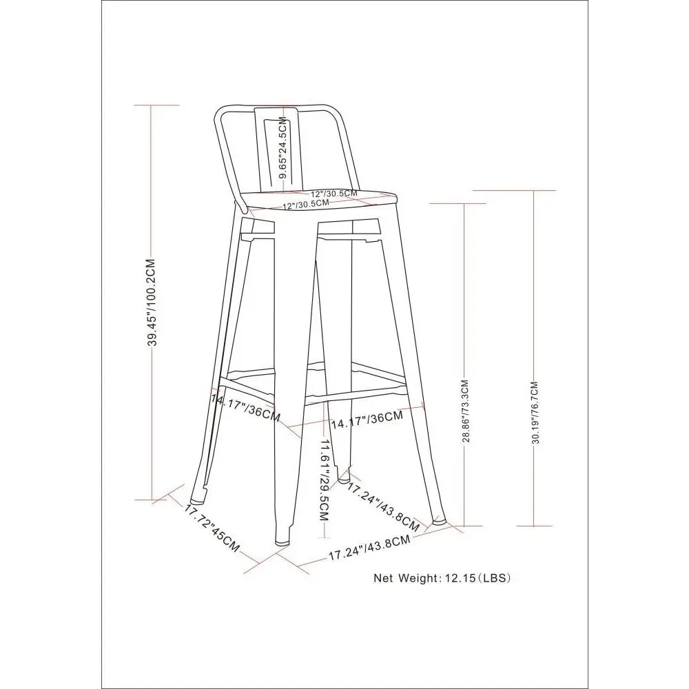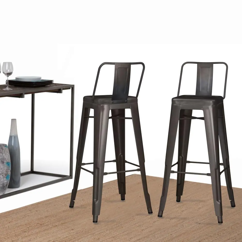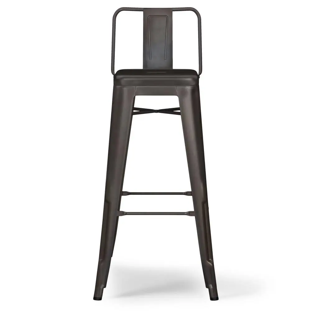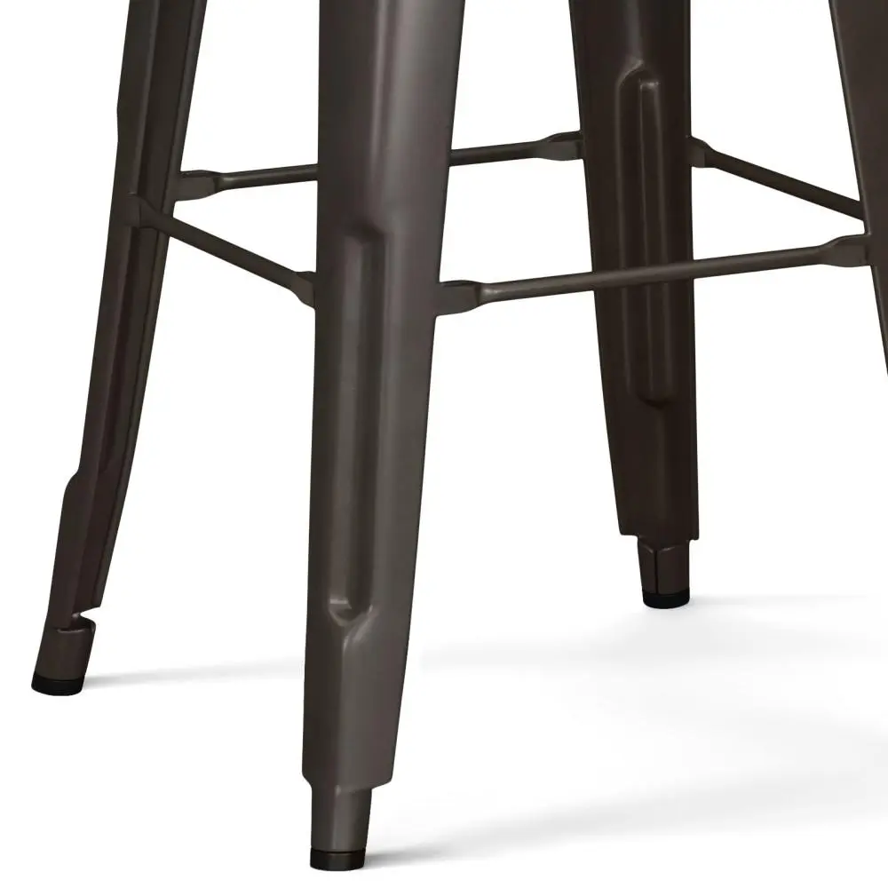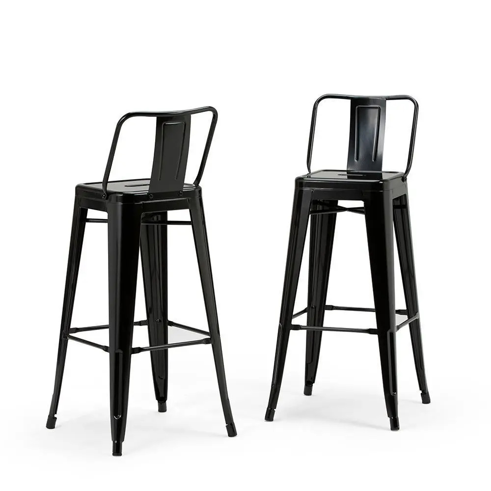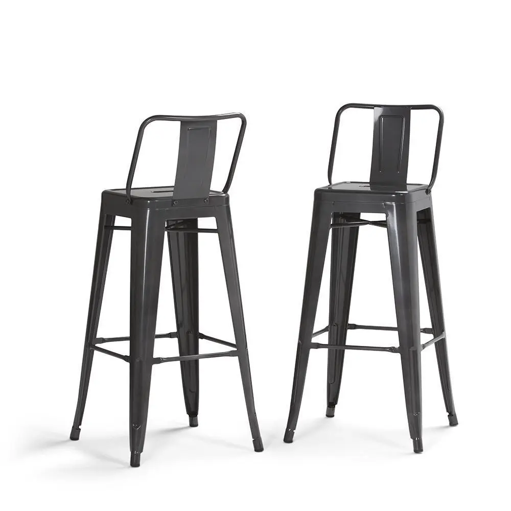 Bring together contemporary styling and industrial design with the Rayne 30 inch Metal Bar Stool. The curved back and foot rest offers support and comfort. A cross brace underneath the seat adds extra stability and the peg shaped legs features plastic caps that prevent damage to the flooring. Perfect for pulling up to a bar or high top table.