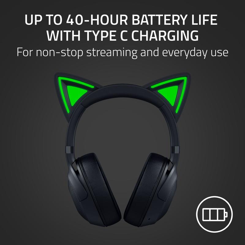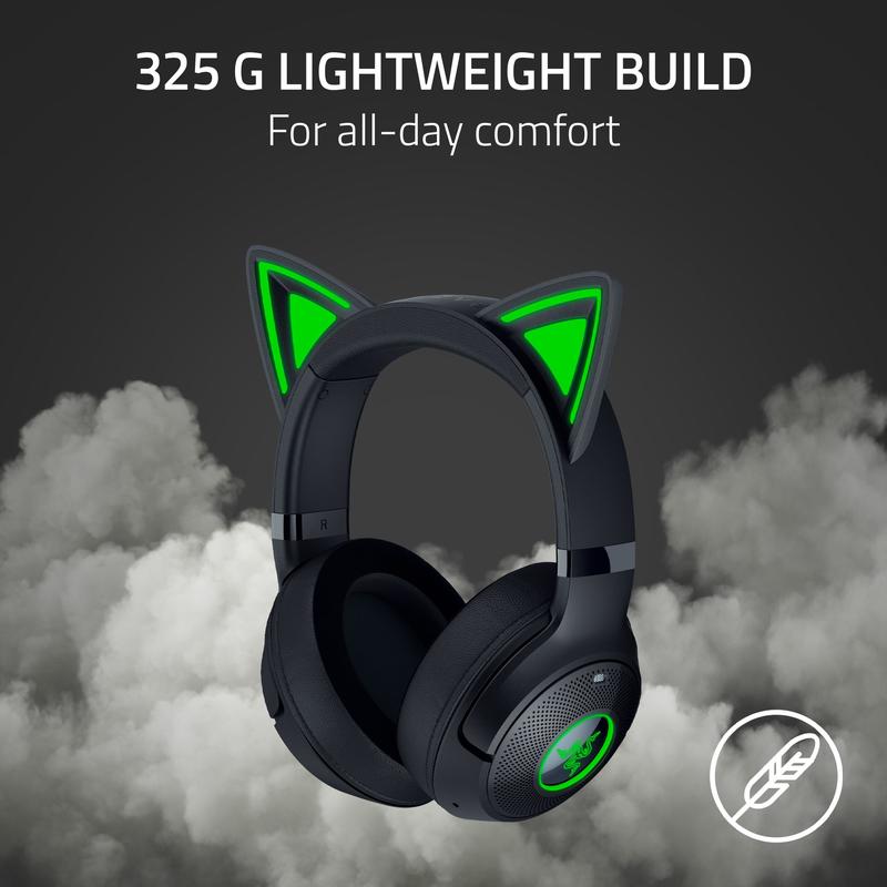 Elevate your gaming with the Razer Kraken Kitty V2. This headset features unique Kitty ears powered by Razer Chroma™ RGB, making you stand out. The earcups are designed to match your personality, ensuring you express your style on stream. Perfect for those who want to turn heads with a distinctive look.