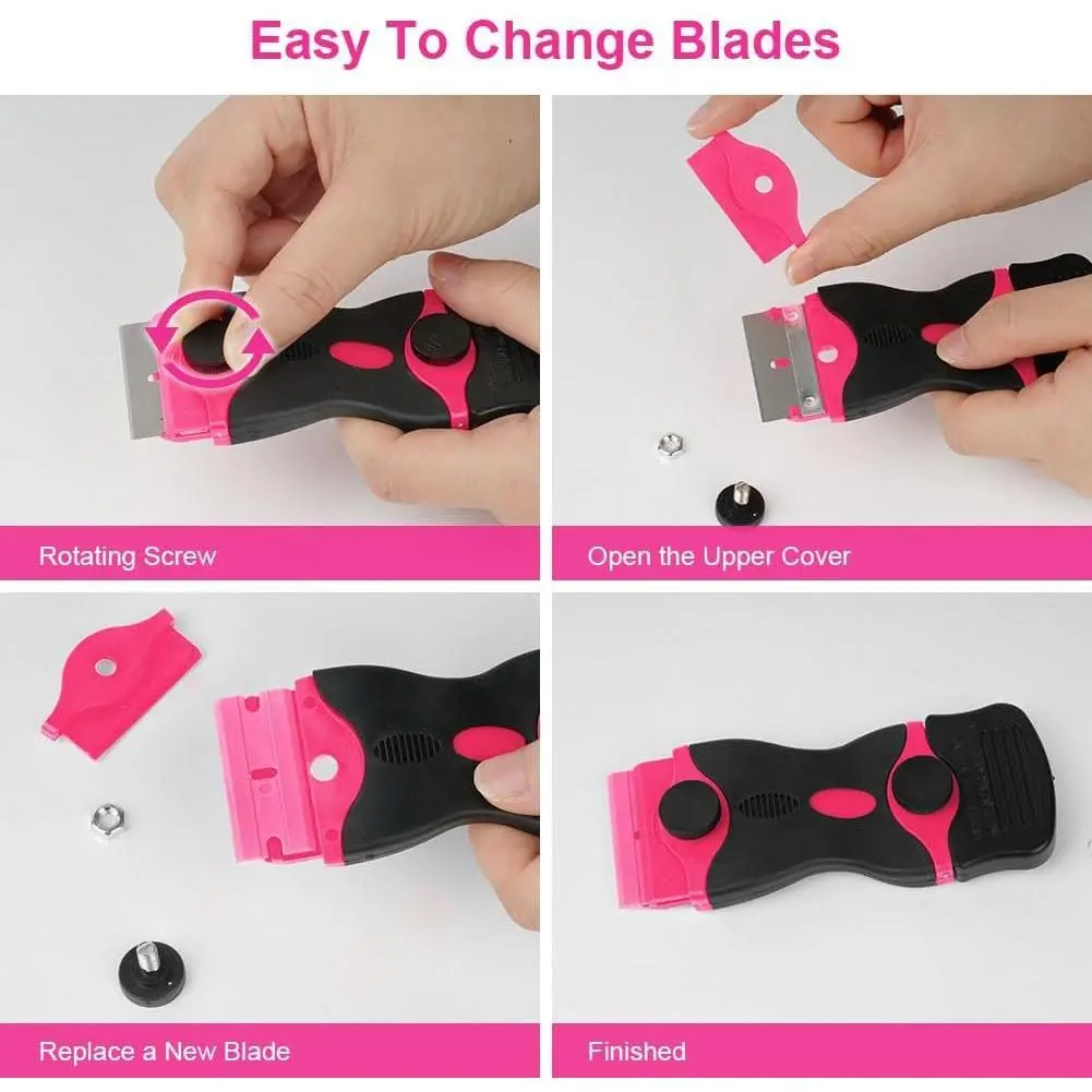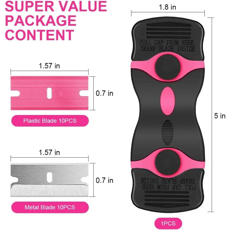 1 x Pink Blade Scrapers + 10 x Metal Blades + 10 x Plastic Pink Blades