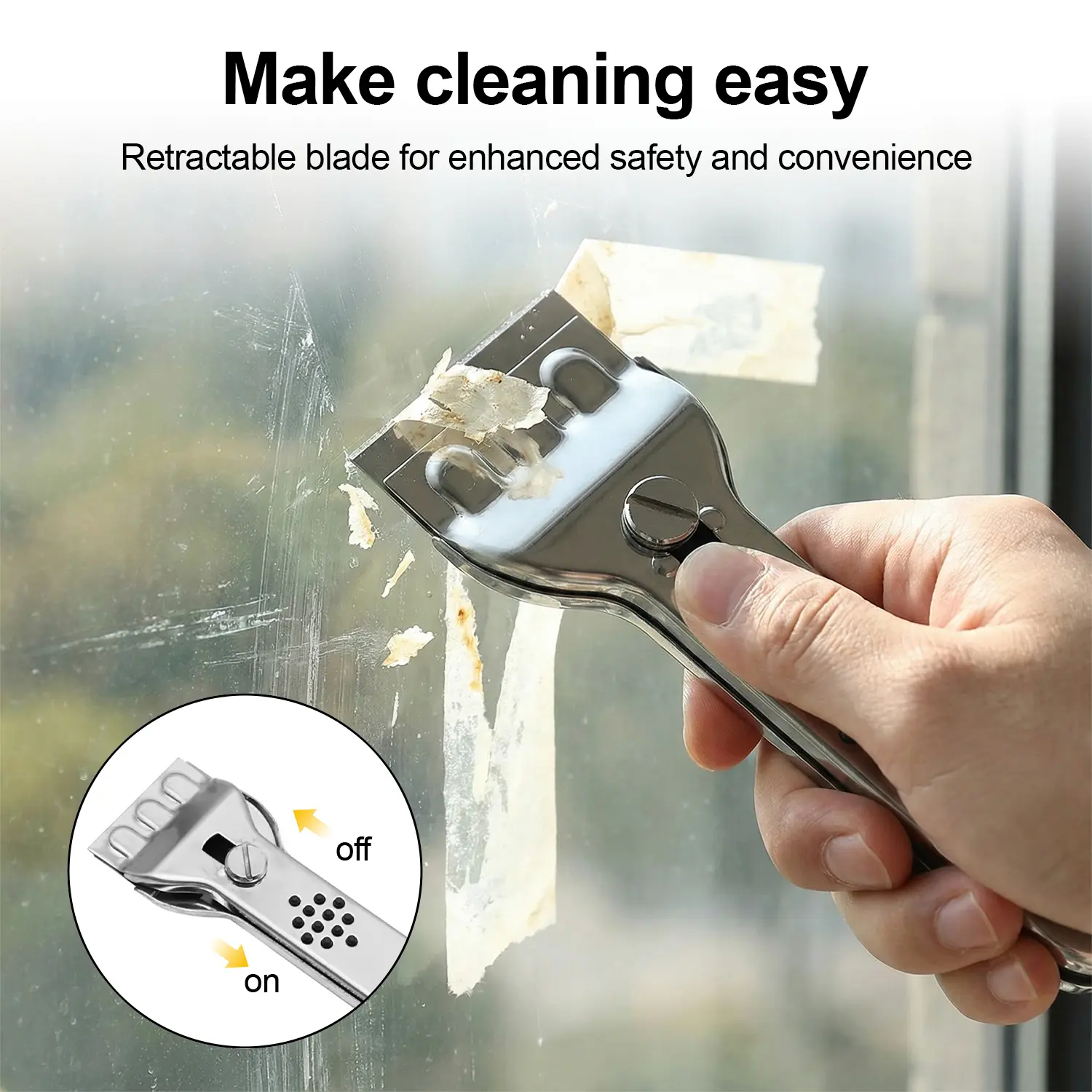 Convenient Replacement: This glass cleaning scraper has a design that allows you to easily unscrew the screws by hand, without needing a screw extractor tool, when you want to replace the cutter.