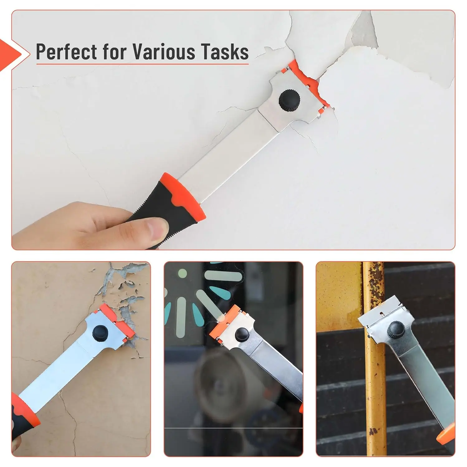 ·[Ergonomic Design] - The non scratch window razor blade scraper tool is designed with ergonomic curved handle for greater comfort and control, make you complete the work with a reduced amount of effort, making scraping projects faster and easier