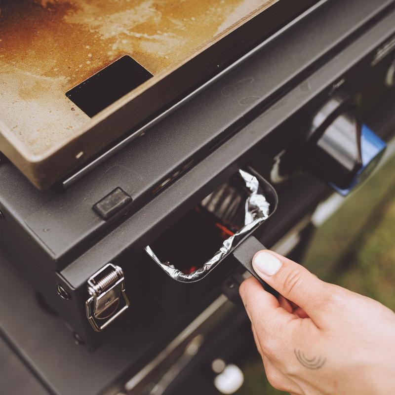 Includes wheels for easy mobility, condiment tray, paper towel holder, and wind guards for ultimate convenience