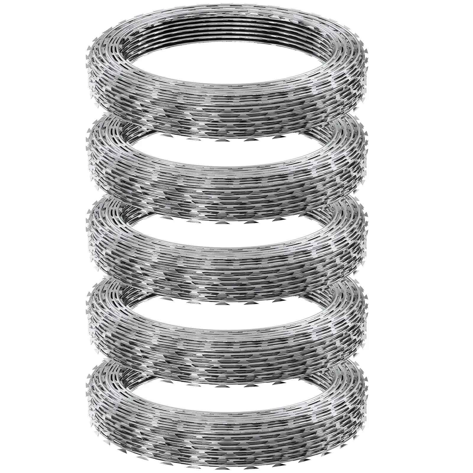 • Sharp Razor Blades: Upgraded with razor blades measuring 0.02" in thickness and 0.98" in width, our razor barbed wire provides superior protection. The longer and sharper blades create a more menacing spiral, increasing security and preventing intrusions effectively.