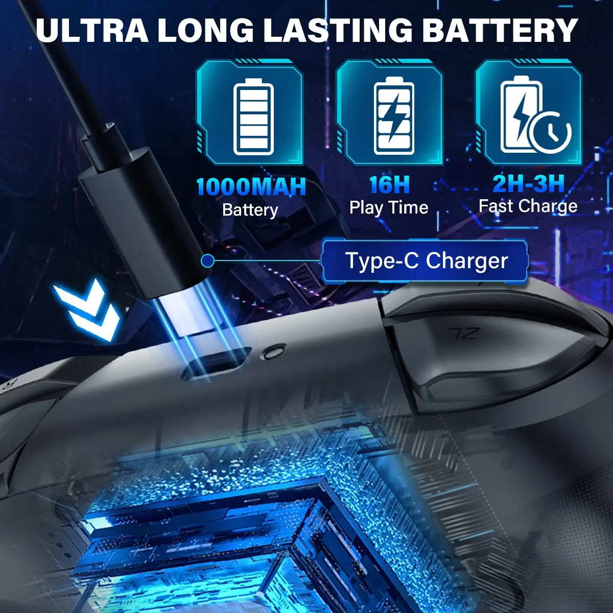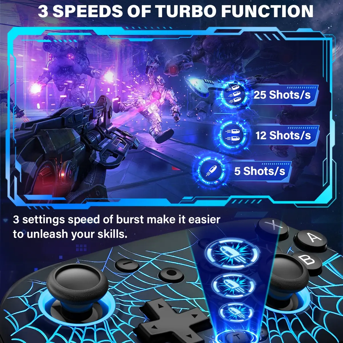 Stop struggling with complex combos! This RBG Wireless Pro Controller has programmable back buttons to map any skill to a single key. Dominate your games with auto-turbo, immersive vibration, and cool RGB lighting. Works on Switch, iPhone, & Android. #Gaming #SwitchController #ProGamer #Gadget #MobileGaming