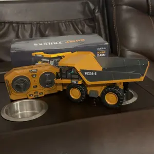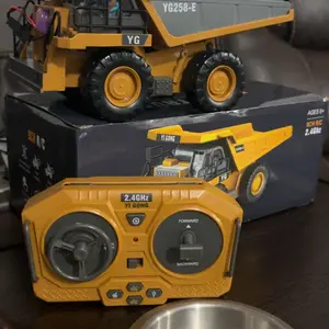 Equipped with a 1200mAh rechargeable battery and a 2.4Ghz transmitter, this truck is powered by AA batteries. It includes a USB charging cable for convenient charging. The RC Construction Truck is a great choice for kids who love RC vehicles.