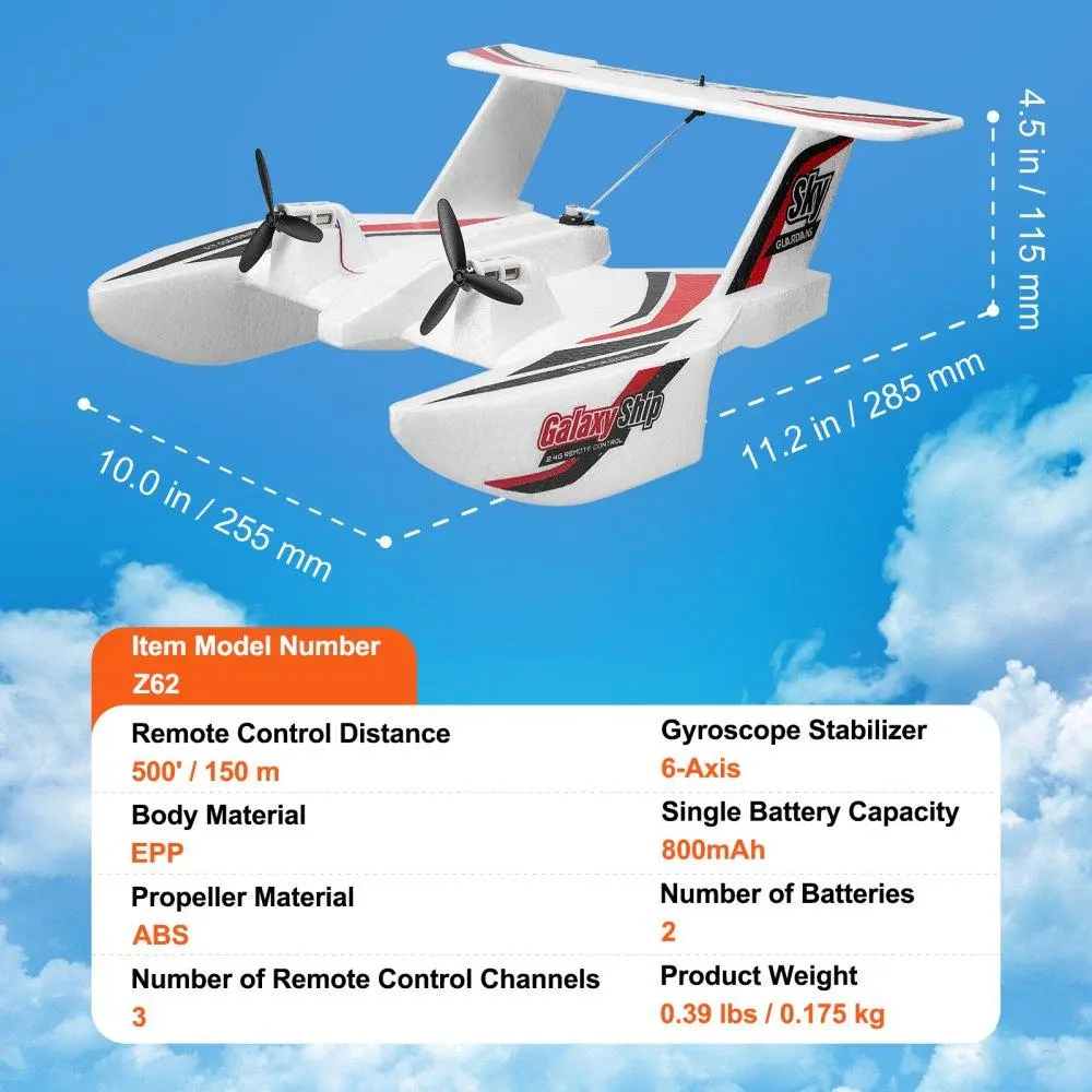 • Multi-Functional Design: Featuring amphibious capabilities, 3 channels, and 2-speed modes, this RC plane can take off from the ground, hand-launch into the air, or smoothly glide from water. Enjoy unrestricted outdoor fun with enhanced maneuverability. Whether you're a novice or a seasoned pilot, it ensures a perfect flying rhythm.