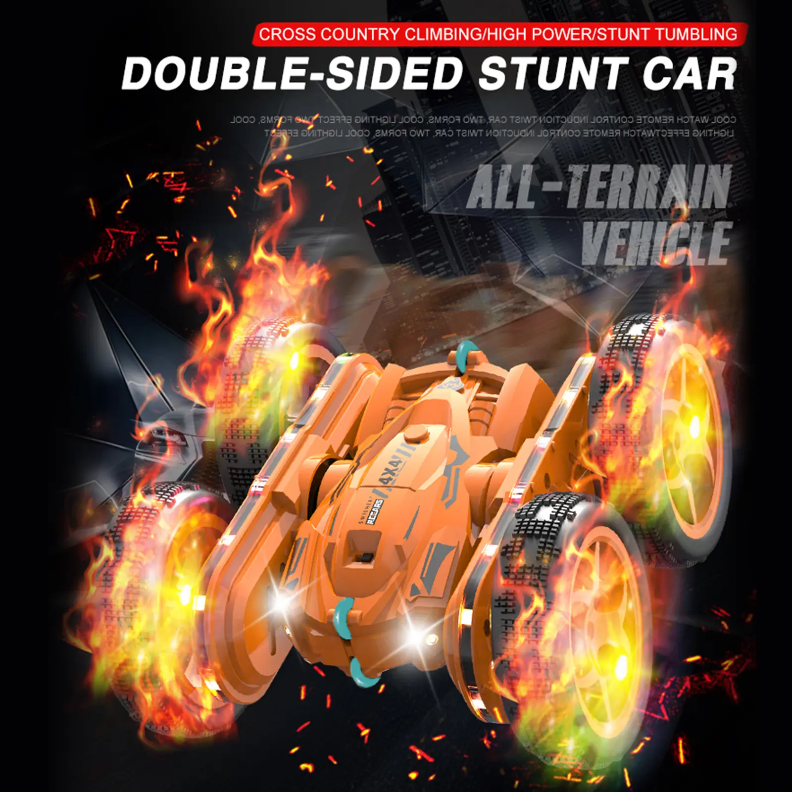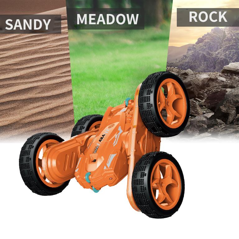 ·360° Rotating and Double-Sided RC Car:Based on the RC Stunt Car's upgraded design, you can do full 360-degree drifts, delivering the thrill of drifting to every game play session. This sturdy and durable RC vehicle toy is built for double-sided racing, allowing it to flip and race on both sides to pass obstacles easily.