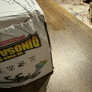 I bought this for my 2yr old grandson for Christmas & he loves his T~Rex. When it got delivered the package & box was sliced open in the back hoping nothing was damaged inside & everything in the box was perfectly fine.