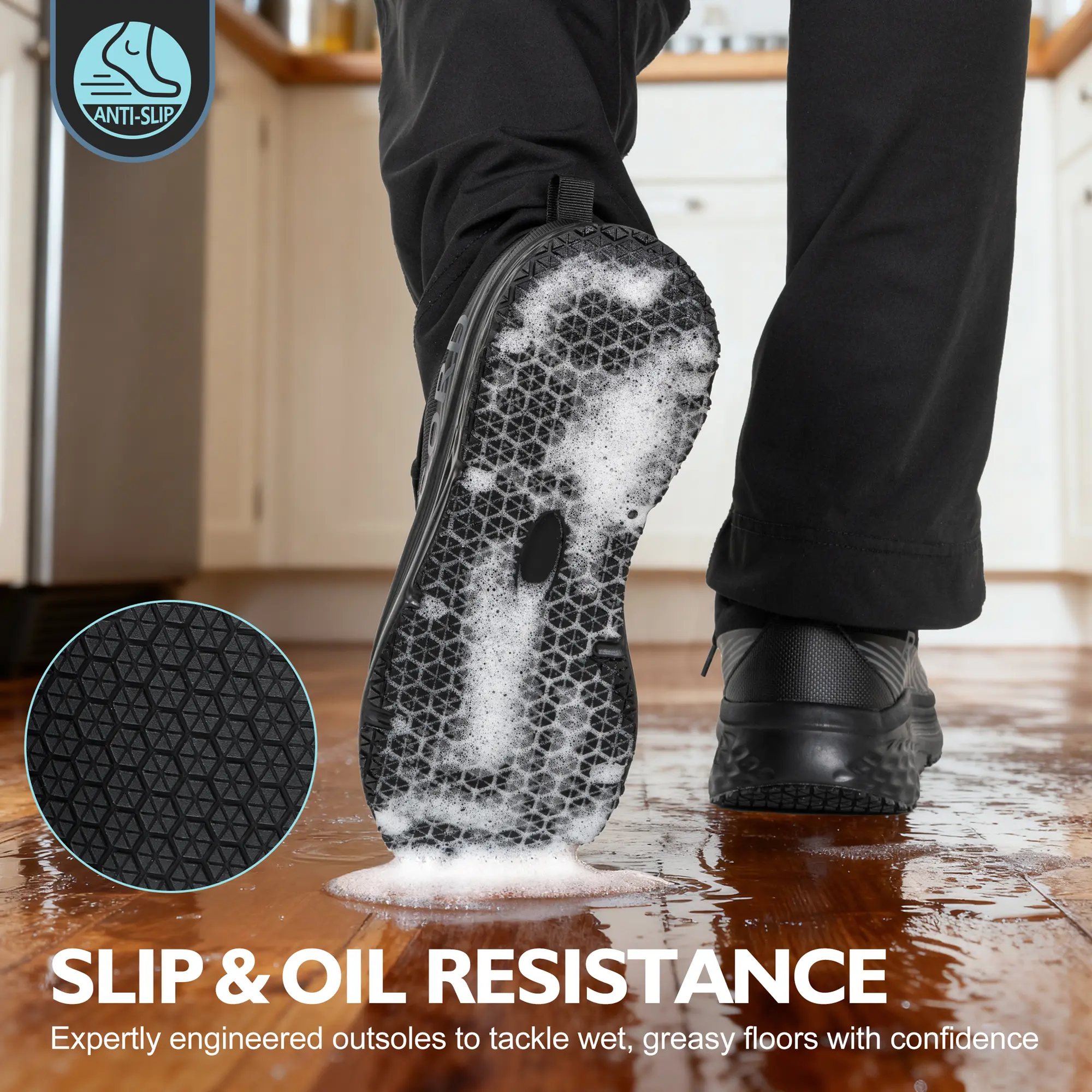 ·Waterproof & Slip Resistant: These work shoes are designed for food service, ensuring safety and comfort. 🌧️