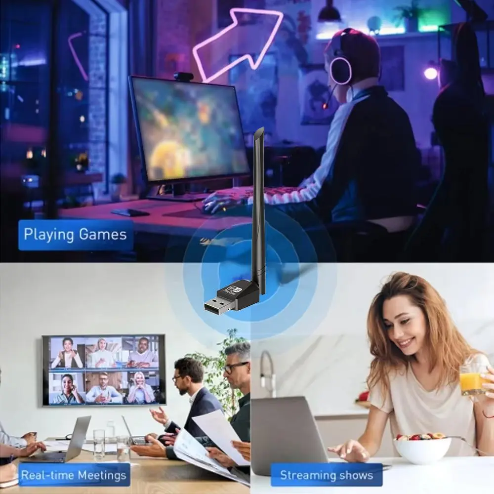 2 in 1 Wireless Adapter, USB Powered Wireless Adapter, Plug & Play High Speed Internet Adapter, No Driver Required, Compatible with Bluetooth-compatible & WiFi