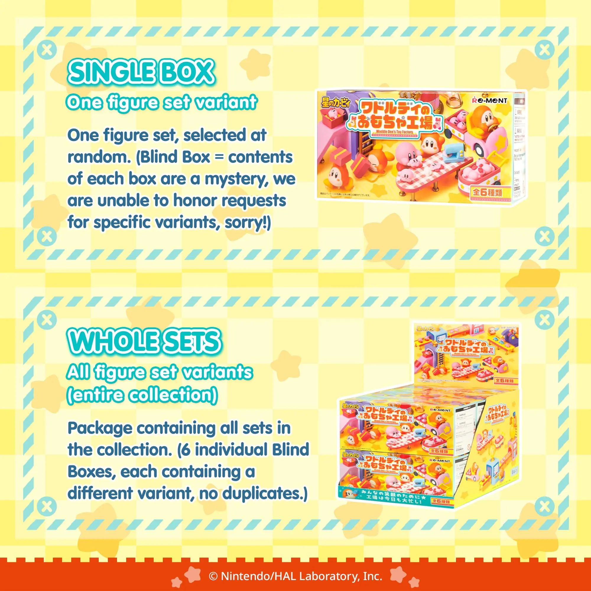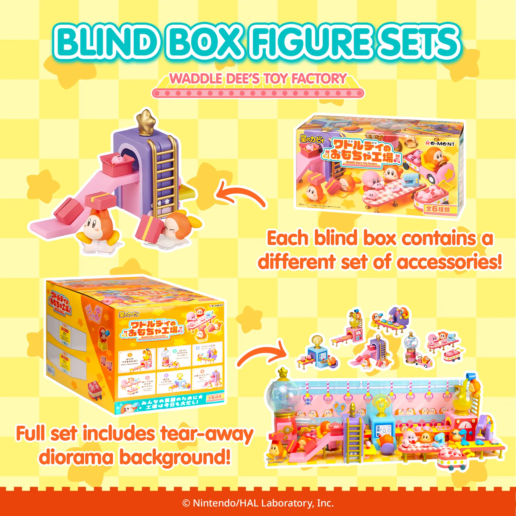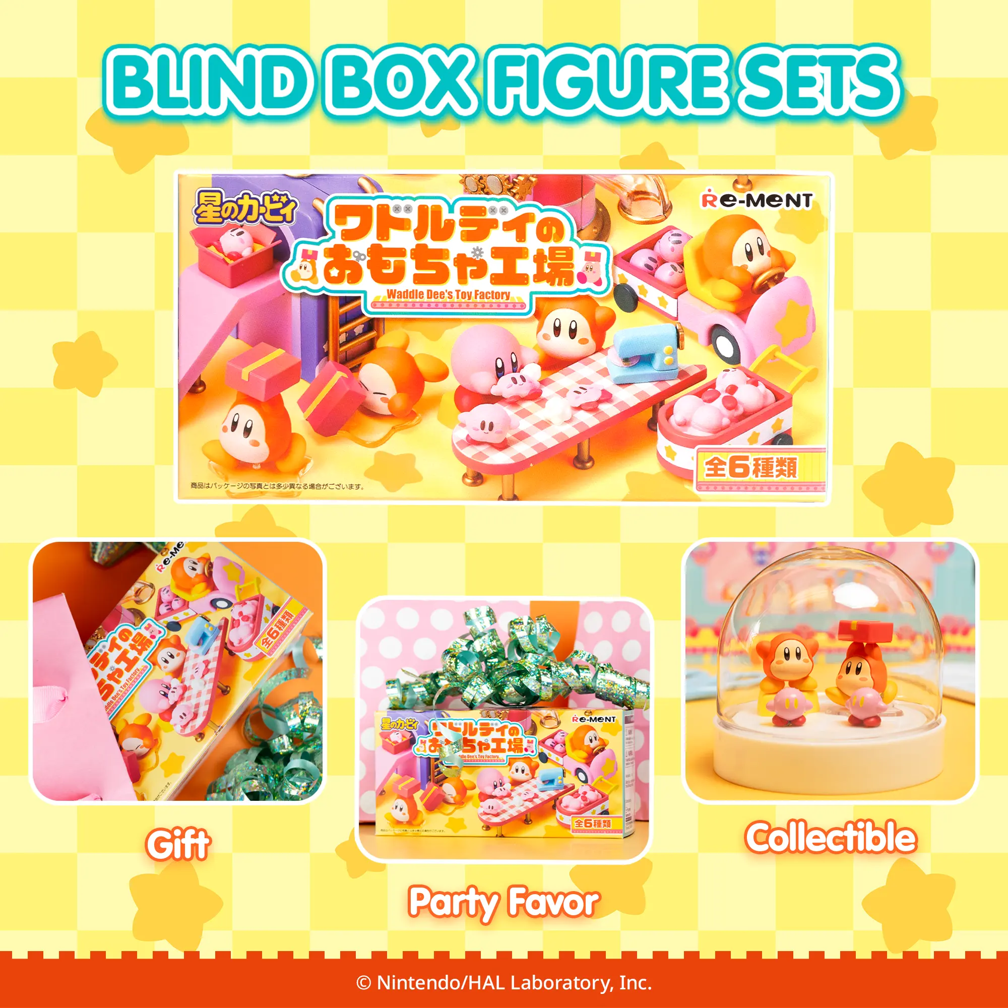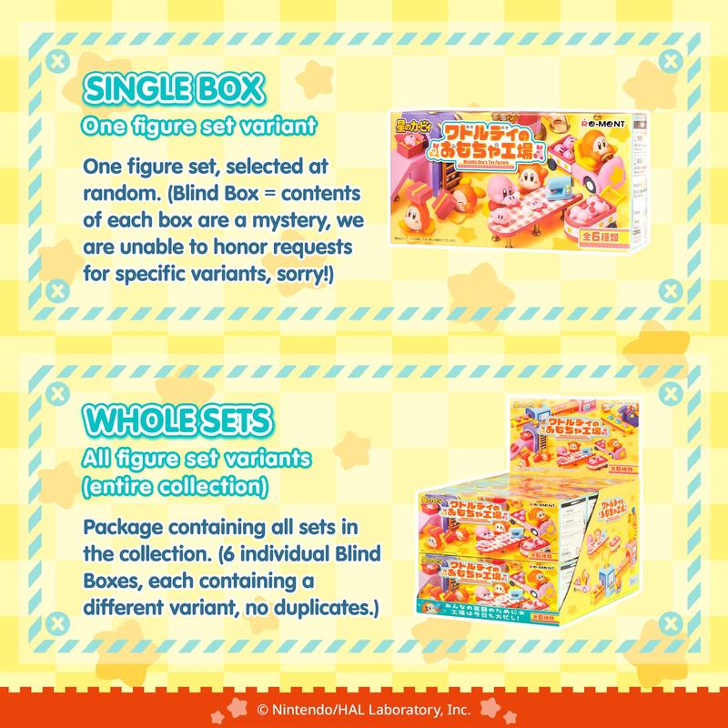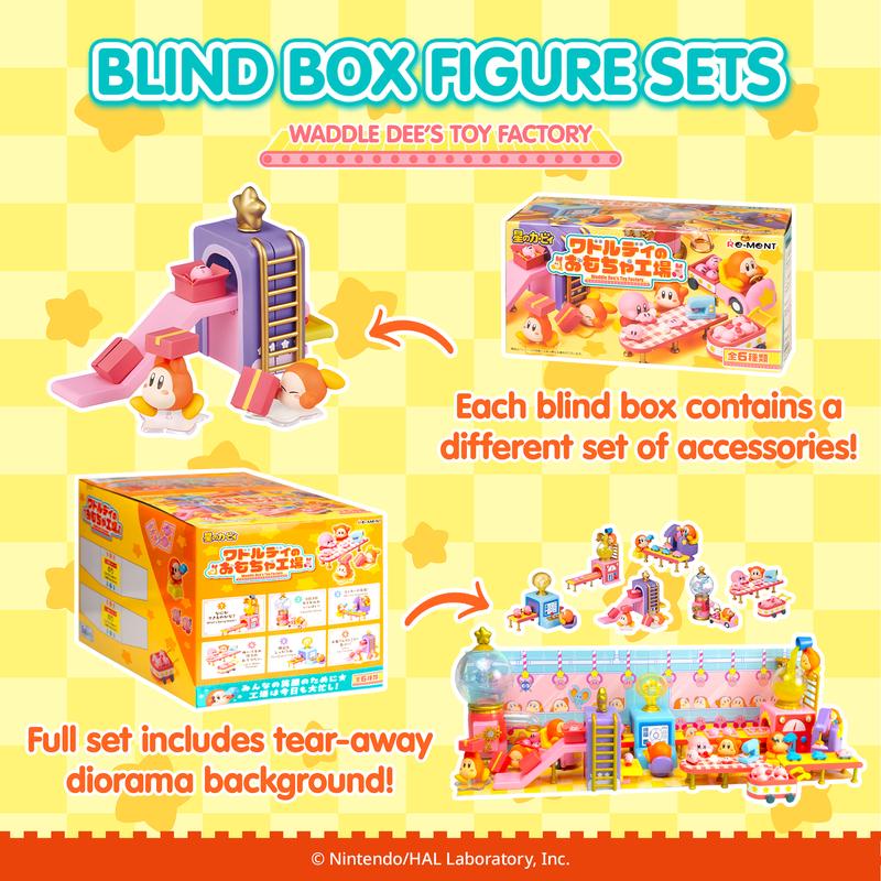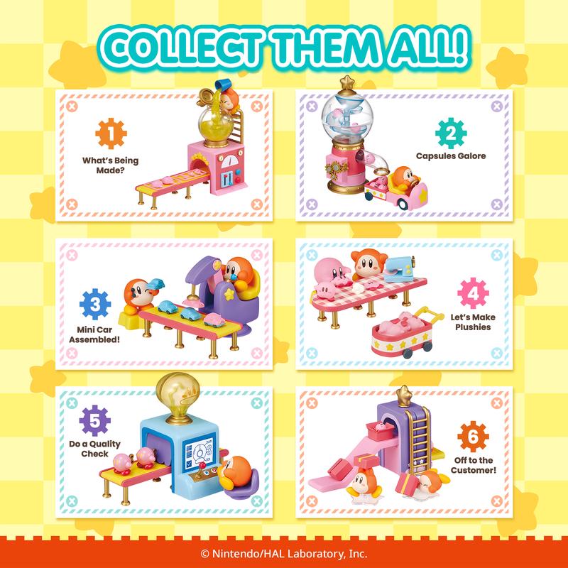 ·[OFFICIALLY LICENSED KIRBY MINI FIGURE SETS] ♡ Premium collectible miniature figure sets featuring Waddle Dee and Kirby working at Waddle Dee’s Toy Factory! Each surprise blind box contains one of 6 mini figure sets that you can combine with other RE-MENT figures to display in tons of creative ways!