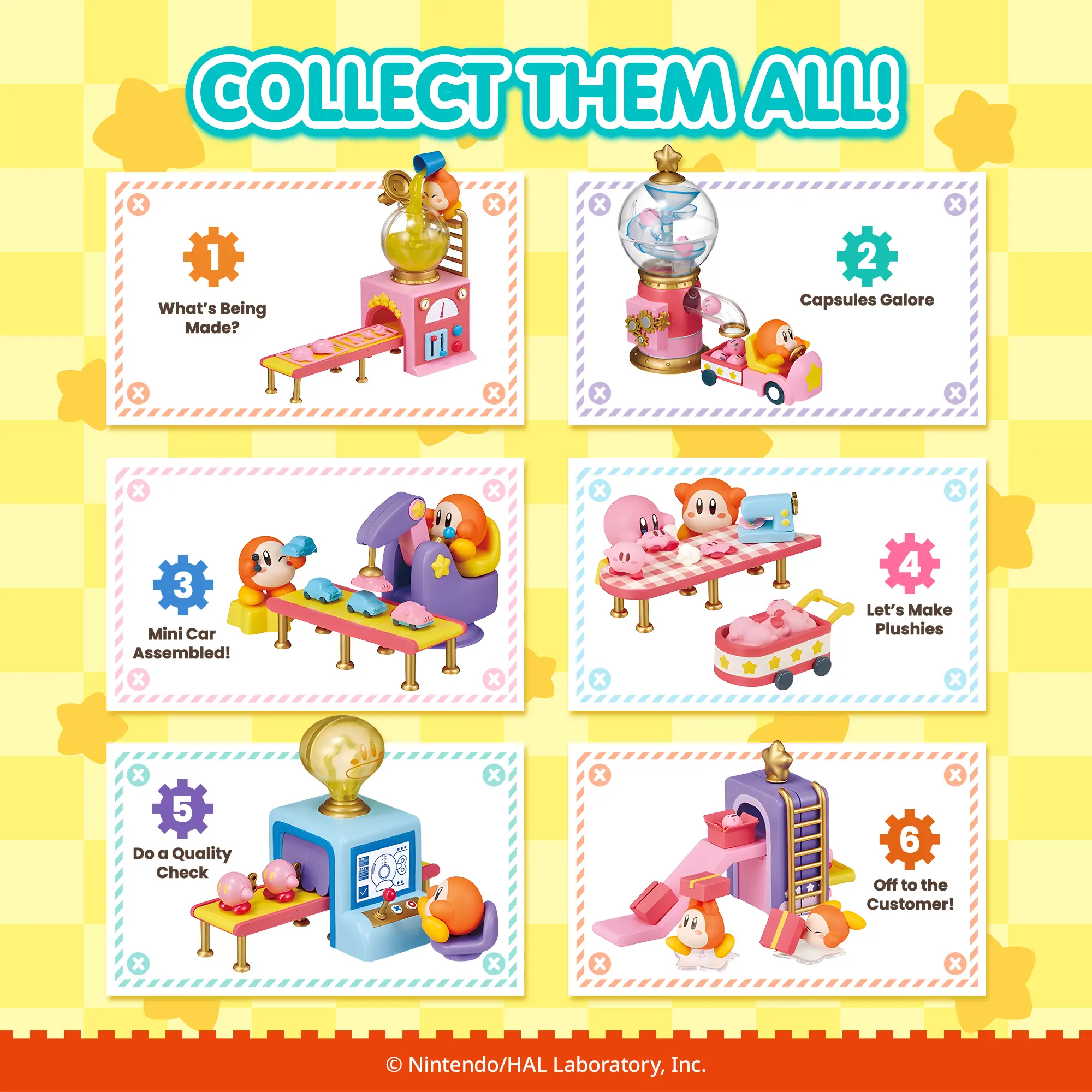 ·[FUN TO ASSEMBLE AND DISPLAY!] ♡ Each set contains a variety of miniature figures, including Waddle Dee, Kirby, props, and factory equipments that let you build charming micro-scenes. Put together assembly parts and paper props to create your own miniature Waddle Dee themed factory environment!
