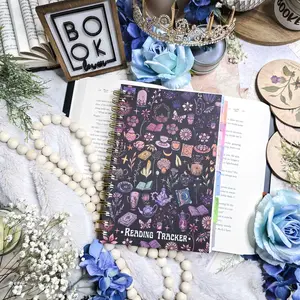 I am in love with this reading tracker. The materials are thick, durable, and stable. The binding is strong and sturdy. What drew me in the most was the creativity of what goes into a book, the process of reading a book, and your thoughts on the book. Plus the stickers!