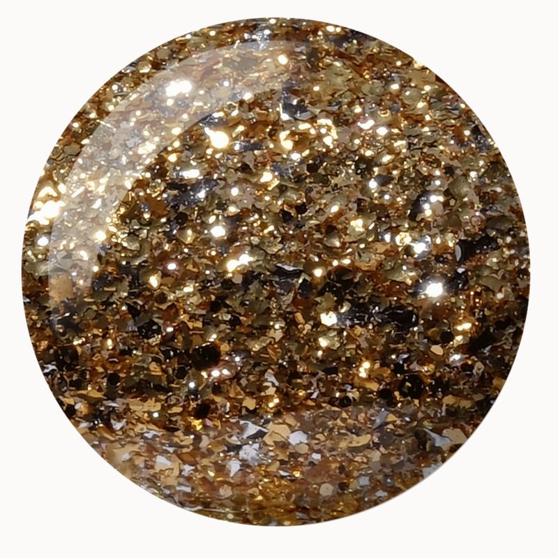 Ready For The Ball #028 (cool gold) — This warm champagne gold with fine gold glitter is a tale as old as time, meant to sweep you off your feet