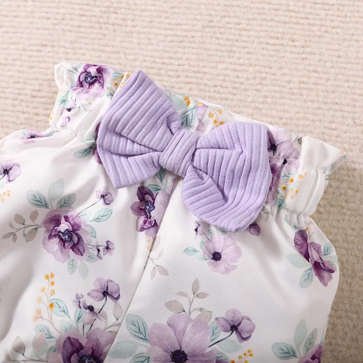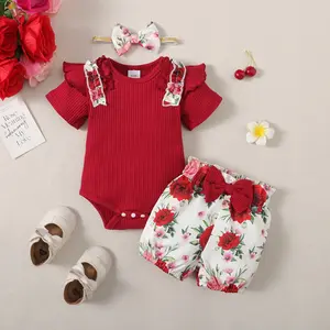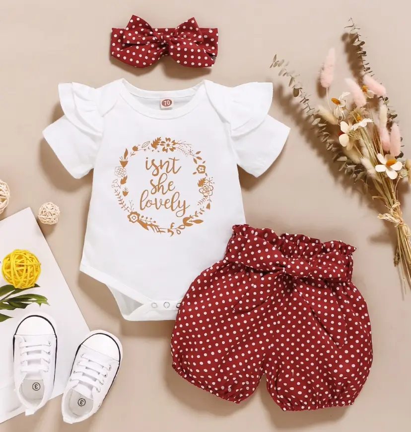 ·The shorts come with a lovely floral print. They complement the romper perfectly, ensuring your baby girl looks stylish. The set includes a matching headband, adding a finishing touch.