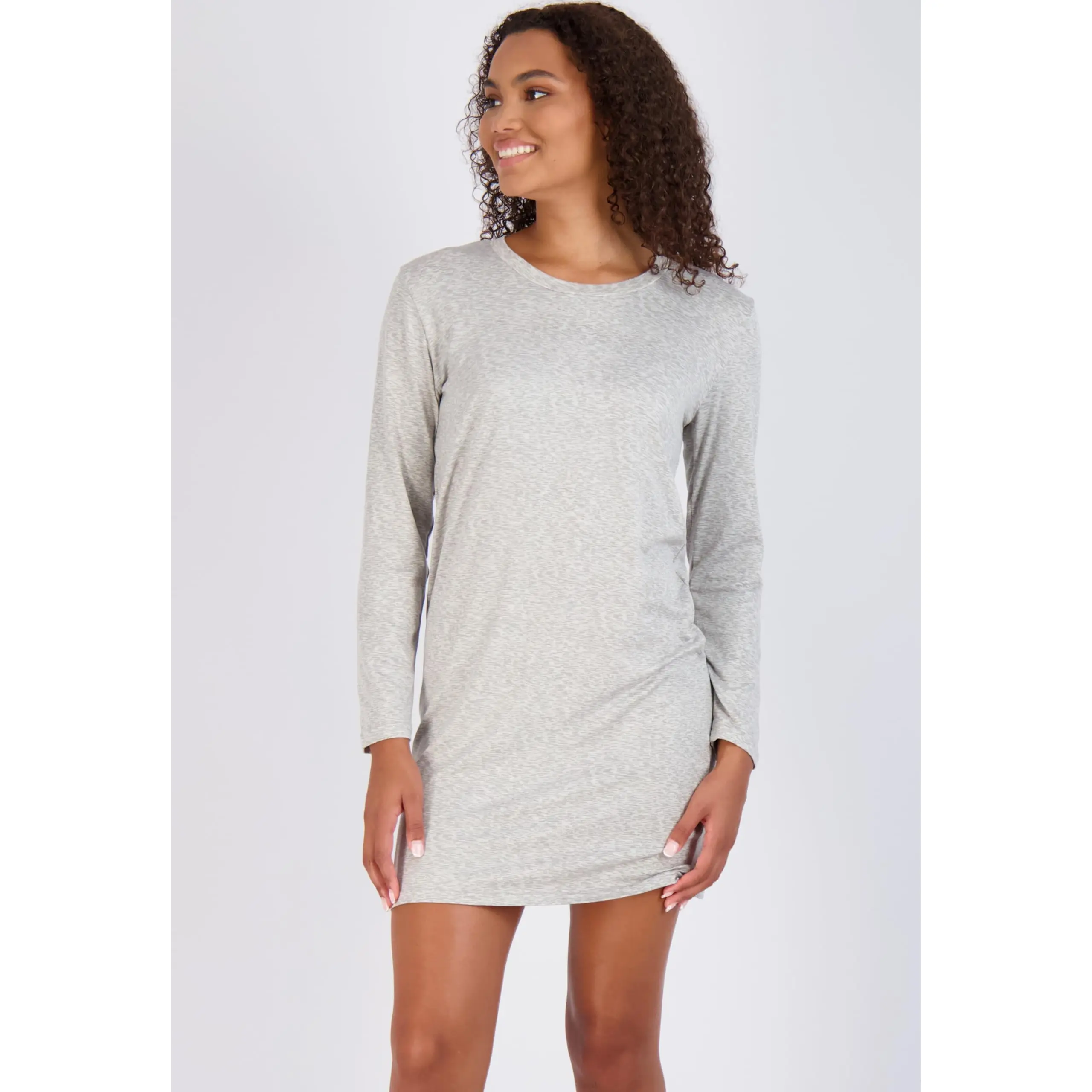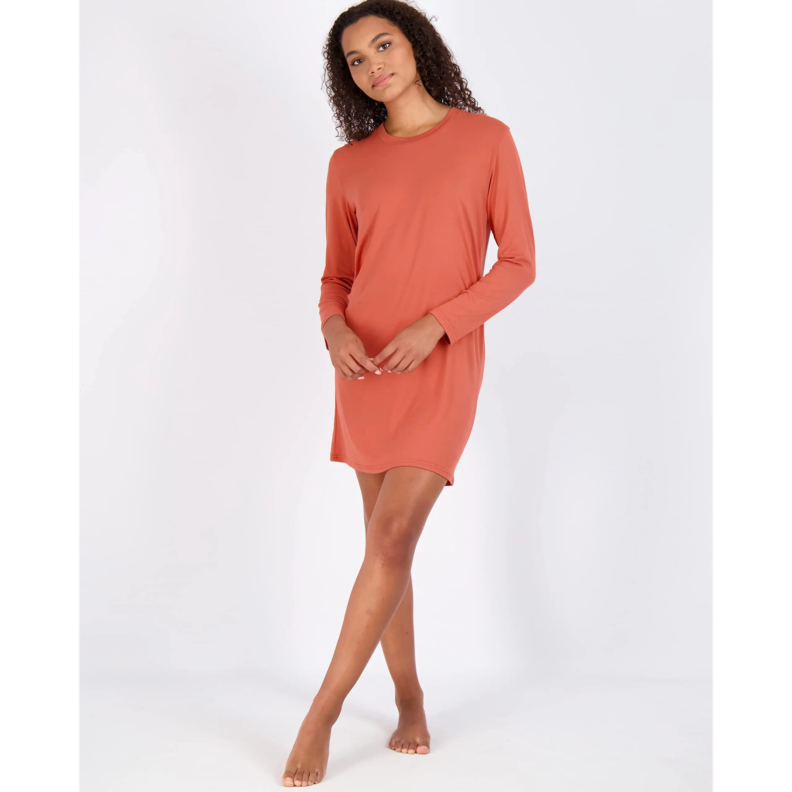 Comfortable. Could wear out or just around the house. Definitely a fall type gown not hot summer wear. I was very surprised at the stripped dress. Slimming look. The fit is great, the drape is great and length work. Not see through and I know because Im wearing pull-ups under and to can't see them.