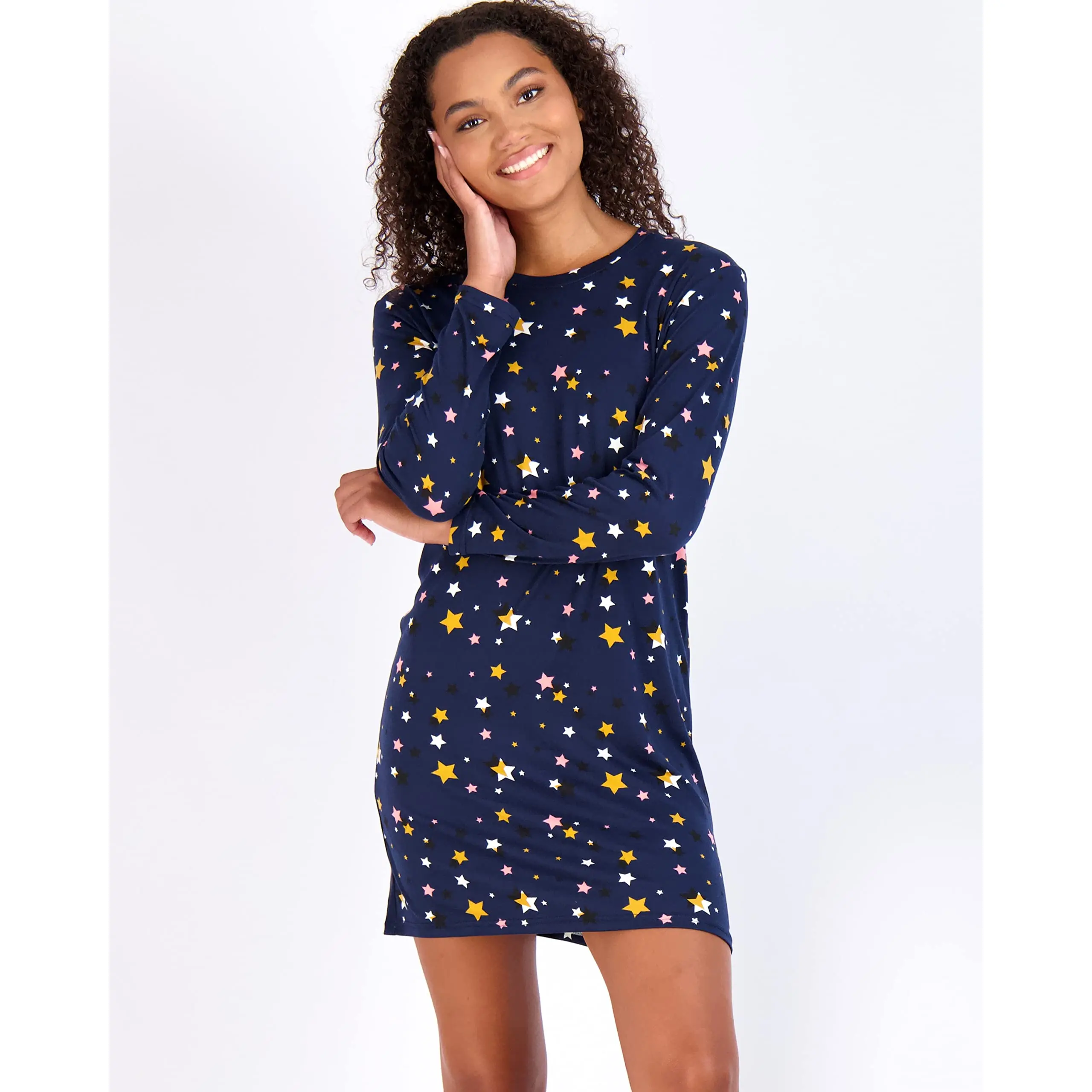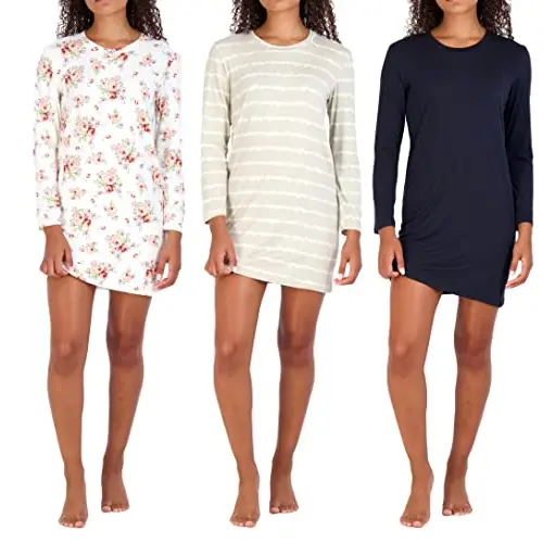 Real Essentials 3 Pack: Women's Nightshirt Long Sleeve Ultra-Soft Print Nightgown Sleep Dress (Available In Plus Size)