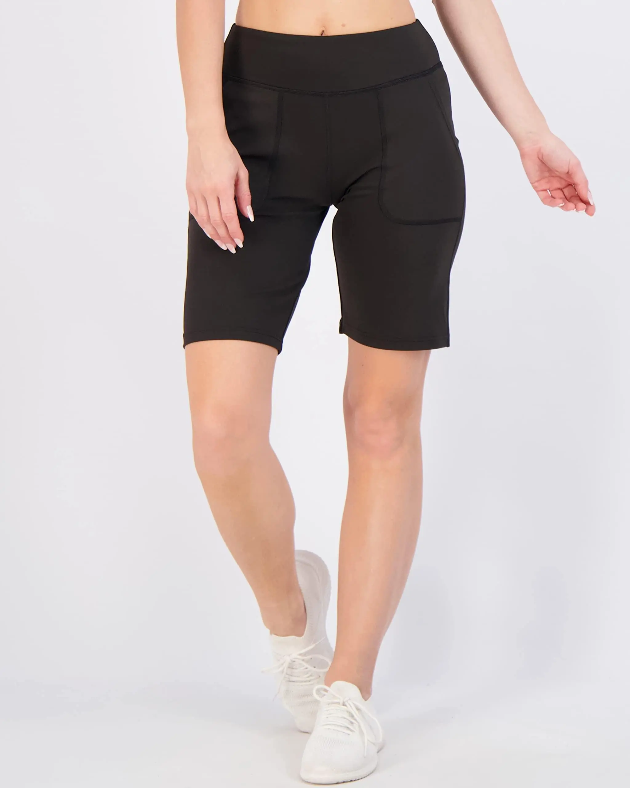 Introducing the Women's Bermuda Yoga Shorts by Real Essentials, the perfect addition to your active wardrobe! This 4-pack of high-quality Women's Bermuda 7” Yoga Shorts is designed to provide you with maximum comfort, flexibility, and style during any workout or activity. Our Women's Bermuda Yoga Shorts are made from high-quality materials that are breathable, moisture-wicking, and designed to keep you cool and dry during your workouts. The waistband is designed to sit high on your waist, providing you with tummy control and a flattering silhouette. Featuring compression technology, these Women's Bermuda Yoga Shorts will enhance your performance by supporting your muscles and reducing fatigue. The shorts also feature convenient pockets for storing your phone, keys, or other essentials during your workout. The Women's Bermuda Yoga Shorts by Real Essentials come in a range of sizes, including plus sizes, to accommodate all body types. And with this 4-pack, you'll have multiple options to choose from, including a variety of colors and styles to suit your individual preferences. Not only will buying a multi-pack save you money, but it also provides you with a versatile wardrobe that can take you from the gym to the street in style. You'll have the option to mix and match your shorts to create a variety of different outfits. At Real Essentials, we are committed to providing affordable, high-quality clothing options for hardworking families. Our Women's Bermuda Yoga Shorts are no exception, providing you with the best in active wear at an unbeatable price. So, whether you're a yoga enthusiast, gym-goer, or just looking for a comfortable and stylish pair of shorts, the Women's Bermuda Yoga Shorts by Real Essentials are the perfect choice. Order yours today and experience the comfort and versatility that these shorts have to offer!