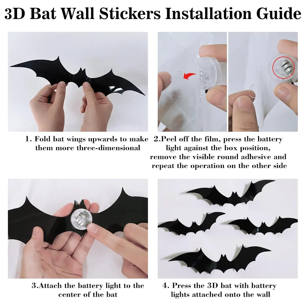 ·Easy to Use: The Halloween window cover includes sticky square tape. Just attach the adhesive to the back of the bat, then affix the LED light, and place it where desired. These bat stickers are removable and reusable, you can store them for use in the next spooky season.