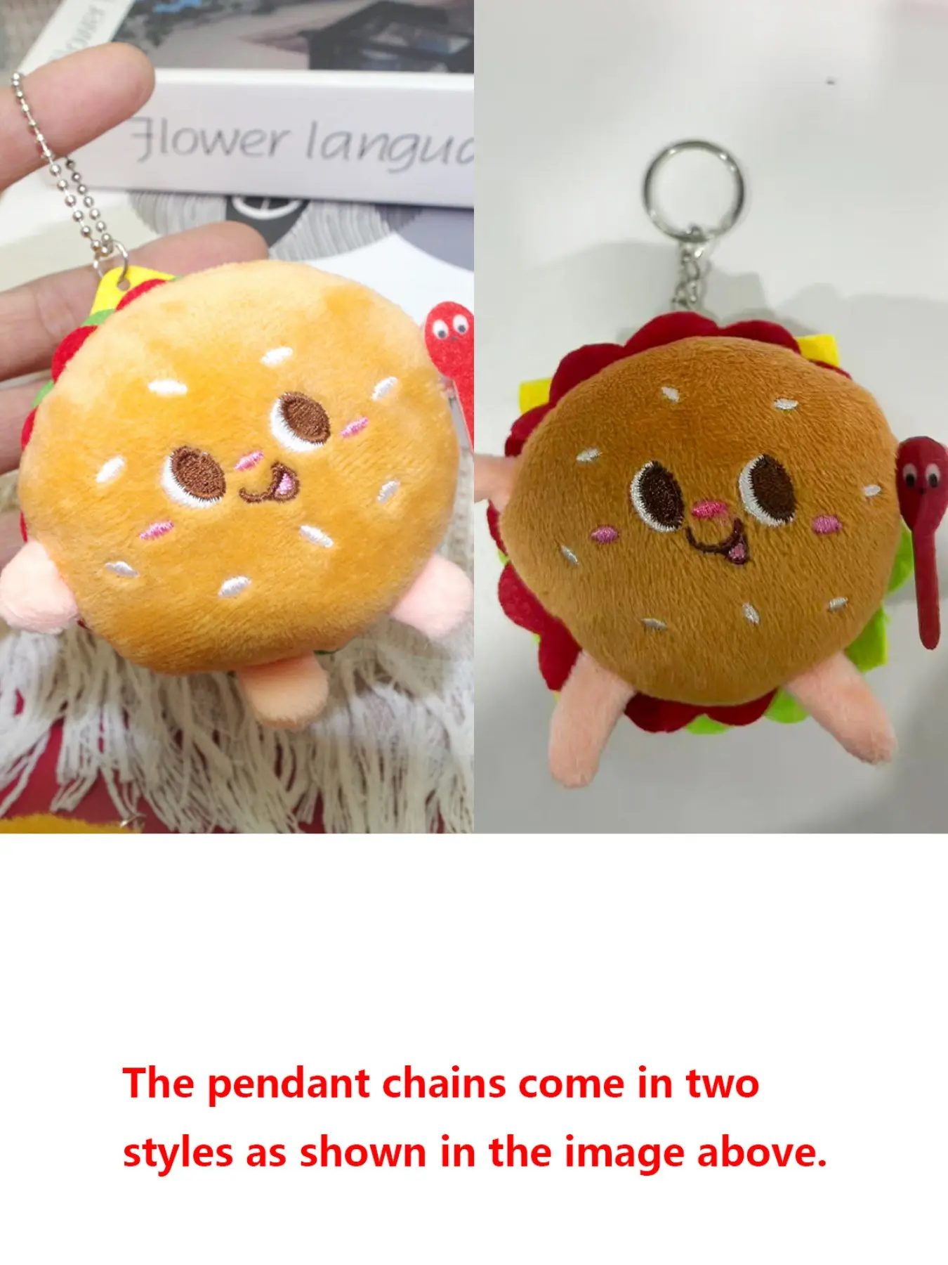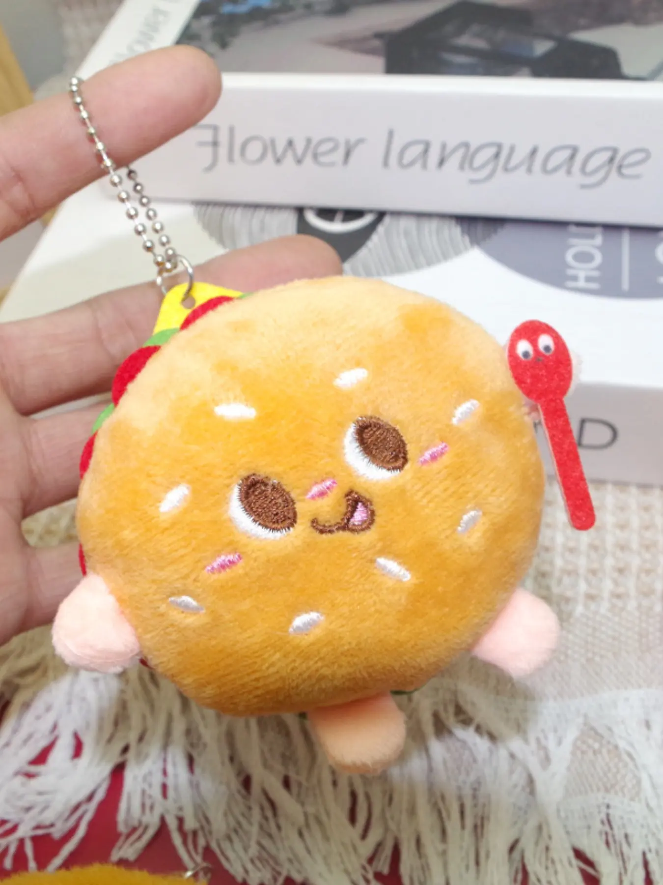 【Food-themed accessory】: Featuring an adorable burger and fries design, adding a fun and playful touch to your keychain or backpack.