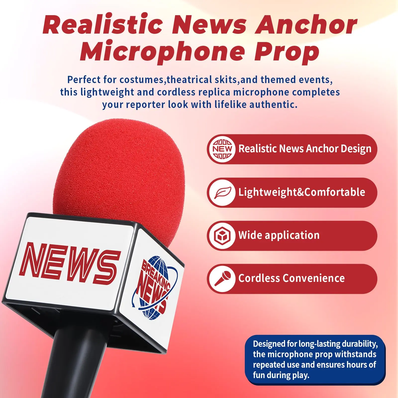 ·Package content: You'll get 2 faux interview microphone prop, each featuring a NEWS sign and a red microphone cover. This news microphone prop offers an immersive reporter cosplay experience, adding an extra layer of fun and excitement.