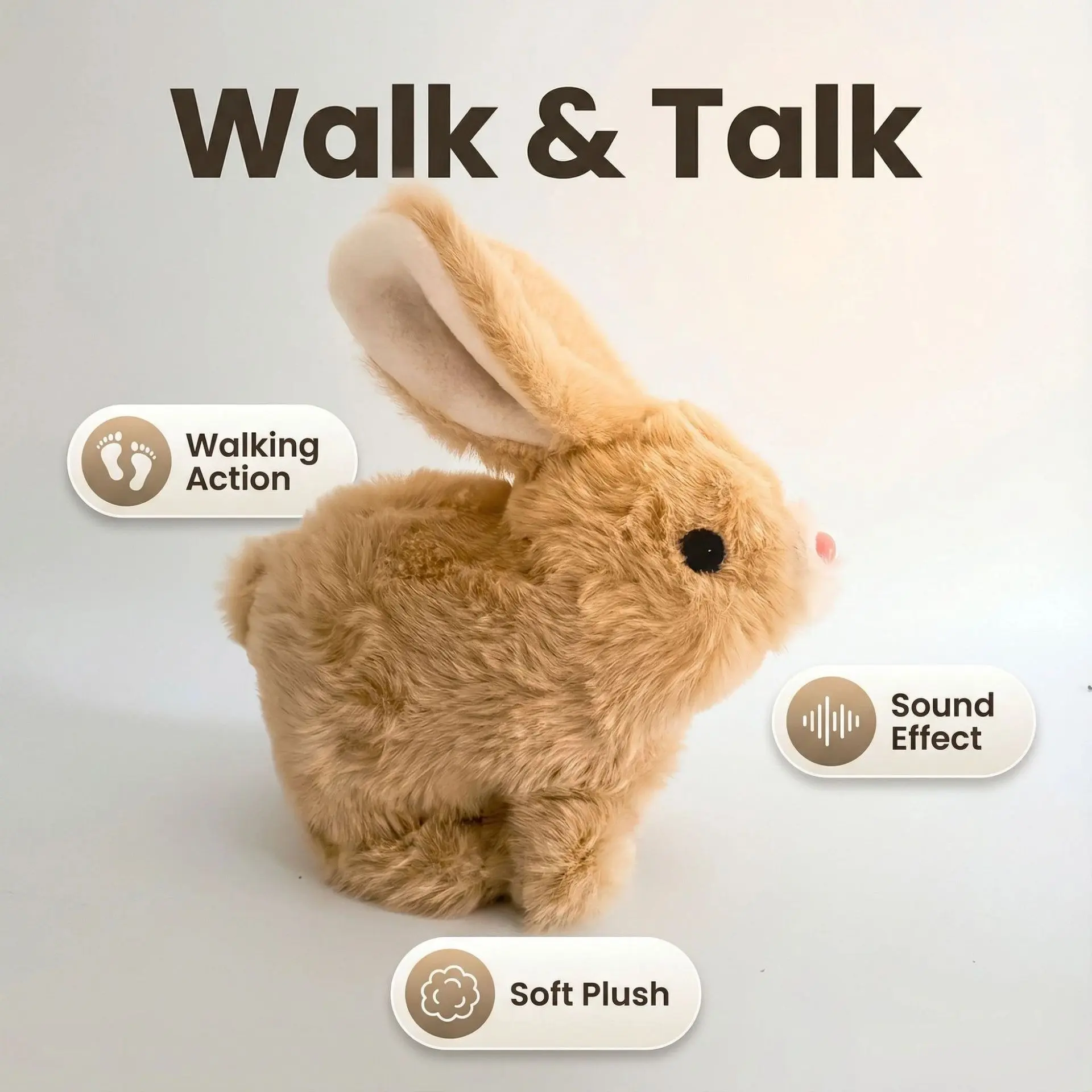 ·Interactive Features: This plush toy comes with sounds and movements. It animates, walking, wiggle ears, and twitch nose. Perfect for engaging play. 🎵
