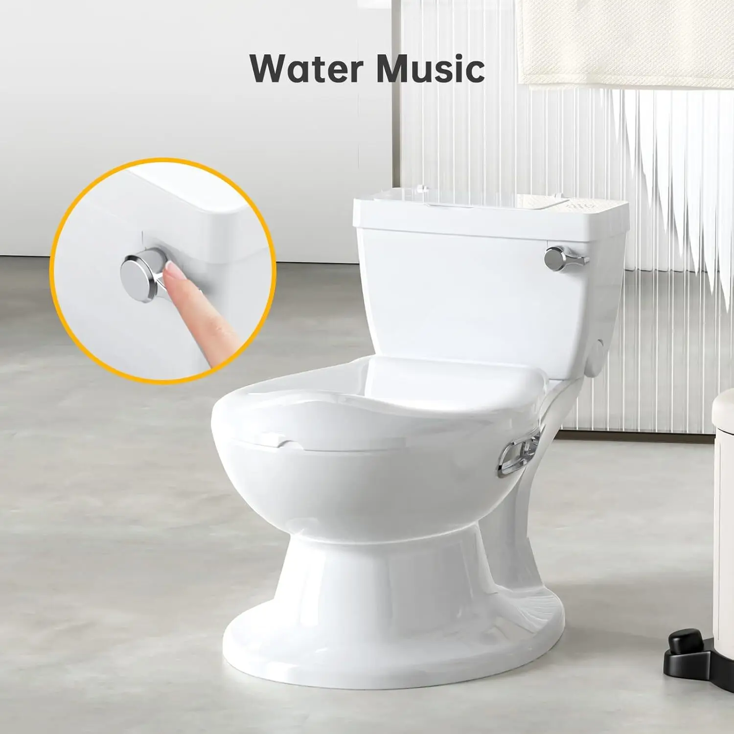 Sound Feature of Potty Training Toilet: With the potty training toilet, the baby can enjoy the Realistic Flushing Sound to let him learn the real world in advance