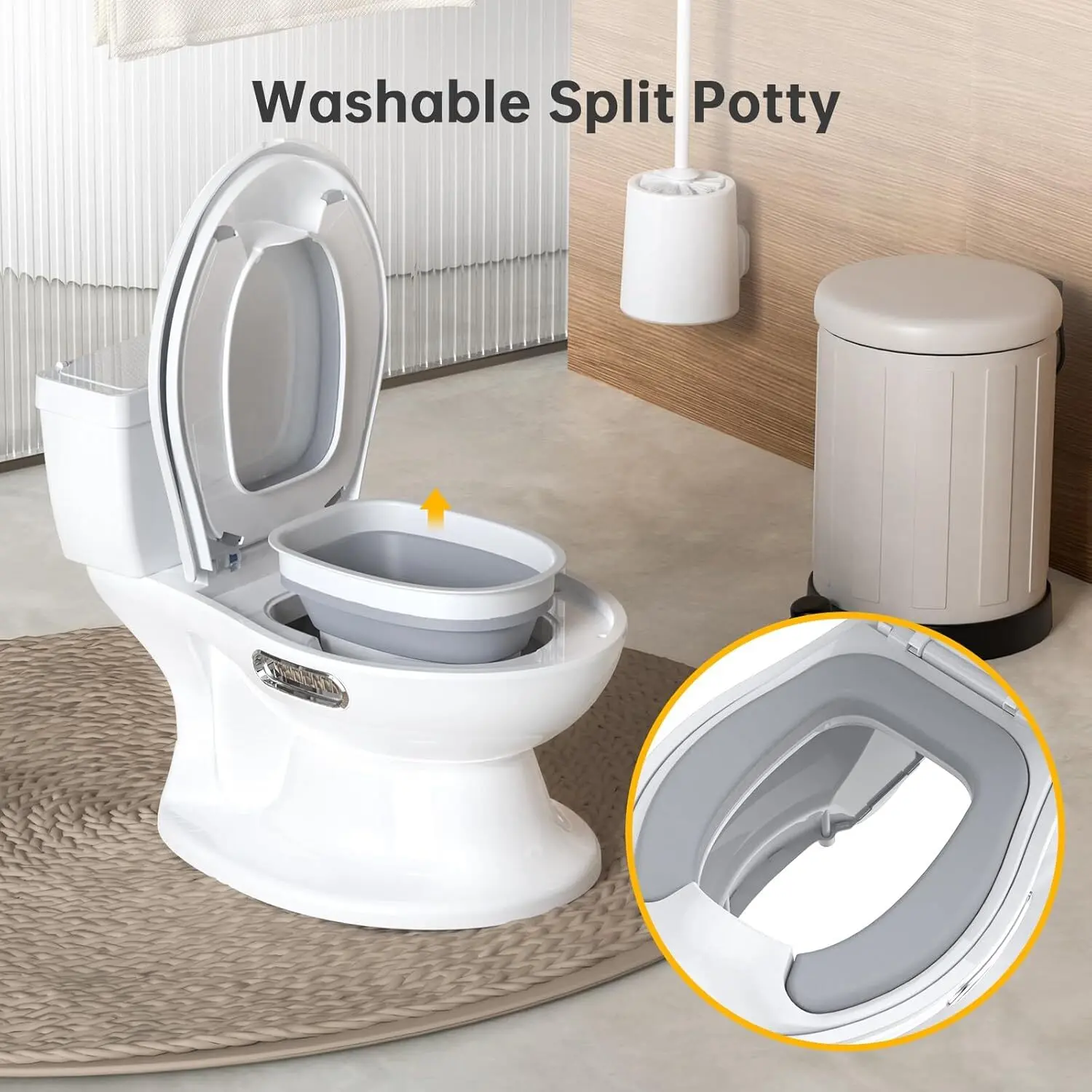 Potty Training Toilet with Removable Pot: The Pot in the Potty training toilet can be removed to wash as usual. It convenient for a new parent