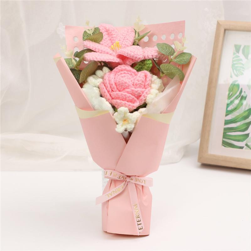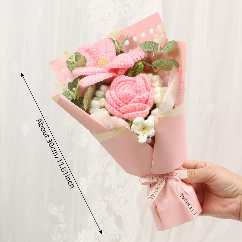Realistic Tulip Rose Bouquet, Handmade Knitted Flower Arrangement, Crochet Artificial Flowers, Wedding Decoration, Christmas Valentine's Day Gift, Party Present