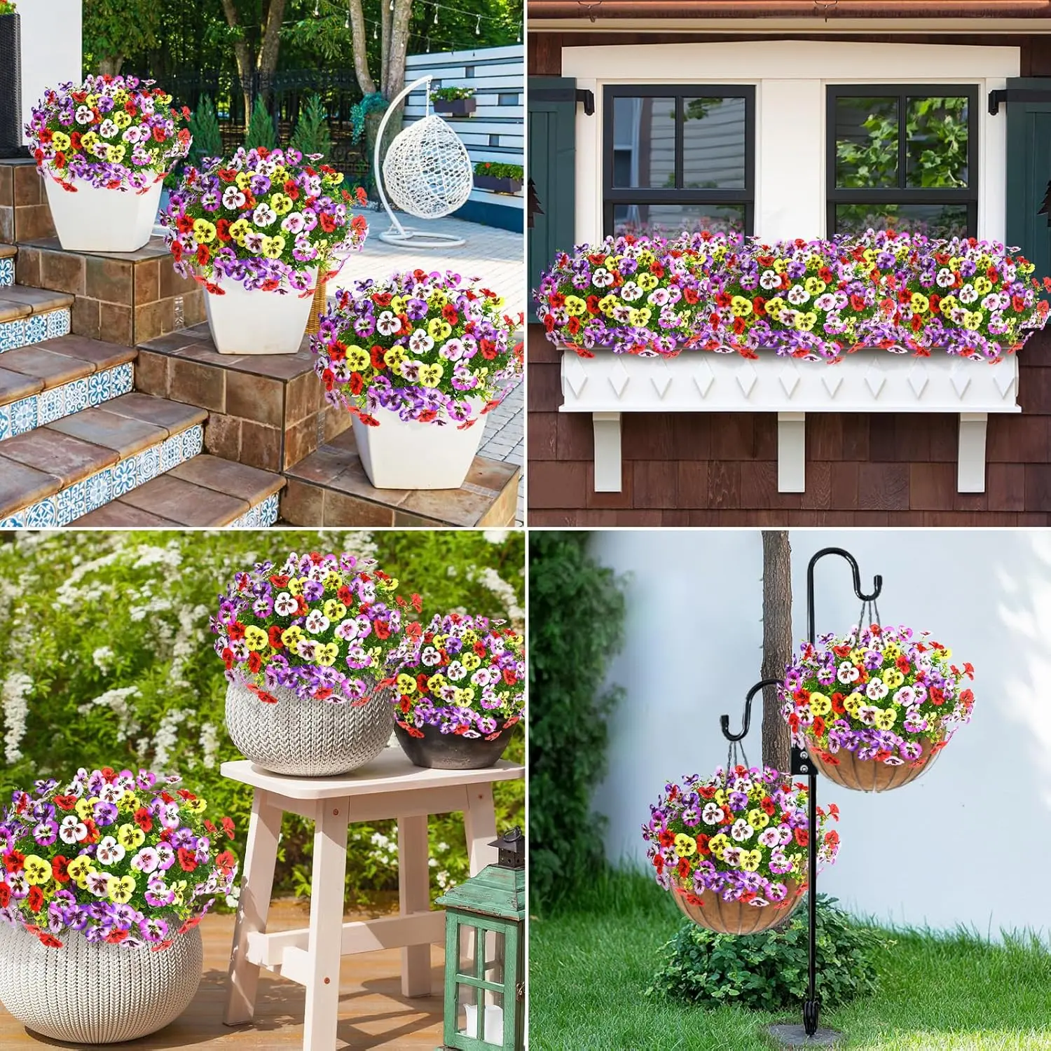 Enjoy the naturalness and fullness of our 2026 upgraded artificial flowers for outdoors. Whether hanging them in a basket or filling them in a planter, they effortlessly blend into various settings. Perfect for porch, patios, front door areas, garden, trellises, yard, or window box, they will bring a breath of nature to your home.