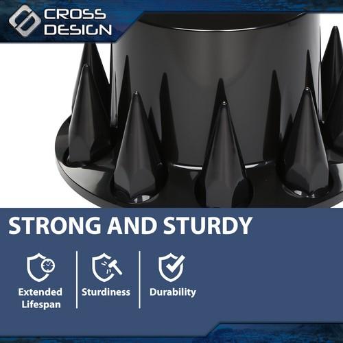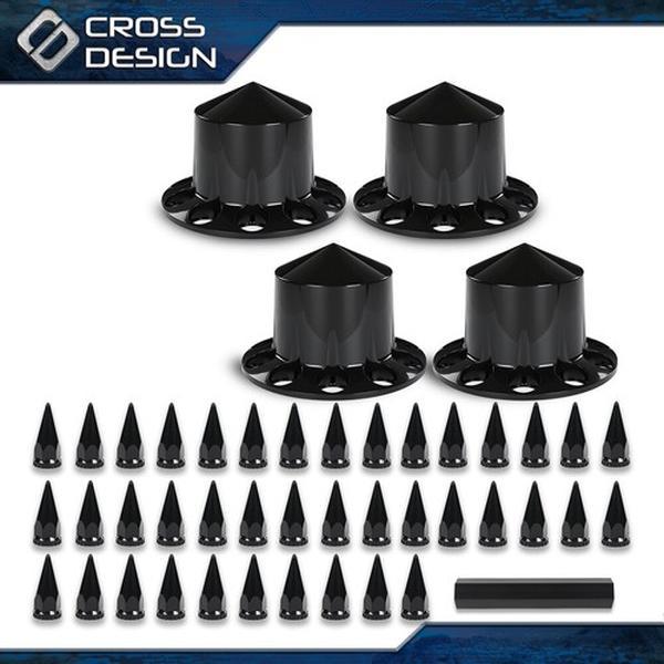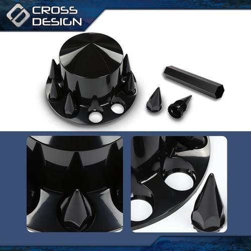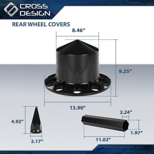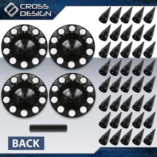 5. CROSSDESIGN Fits Rear 33mm Nut Covers w/ Spiked Removable cap Semi Truck Hub Cover Wheel Set