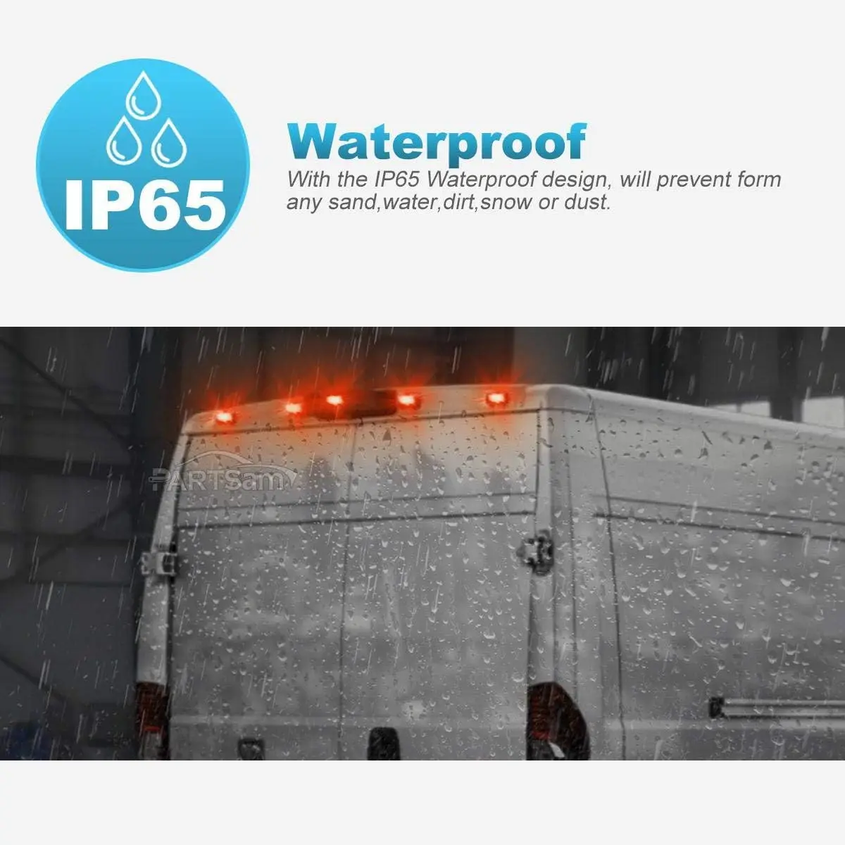 ·Waterproof: Poly-Carbonate Lens and Housing, completely sealed with IP65 waterproof. Feel free to drive in heavy rain or snow; We truly offer for this rear roof mounted marker lights!