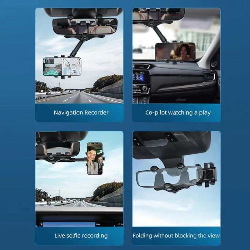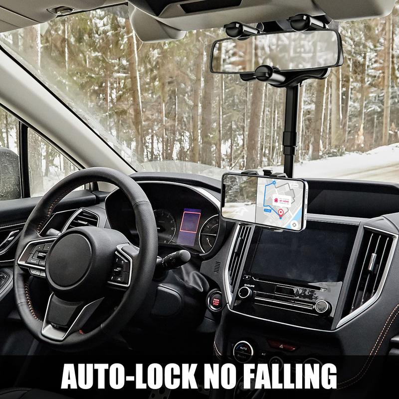 ·NO MORE LOOKING DOWN AT NAVIGATION: The car phone holder is mounted on the car's rearview mirror and levels with it to keep your eyes on the road. No need to look down at navigation, and get a more comfortable and safer user experience using this cell phone holder.