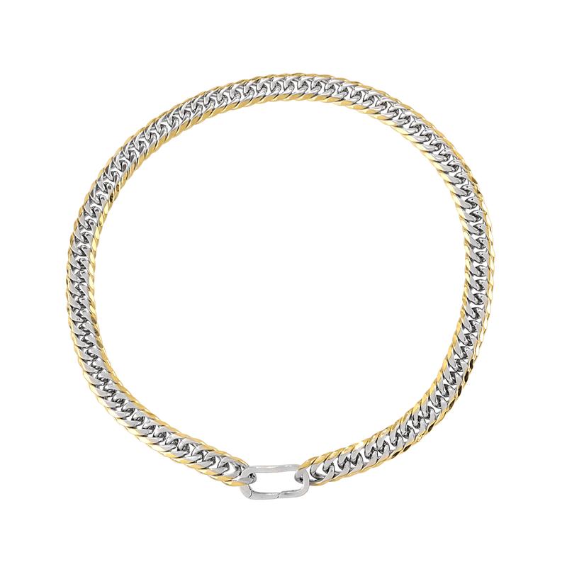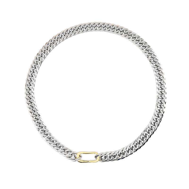 I'm very happy with my Just Click Silver Chain with contrasting gold clasp. It goes well with many other layering pieces I own and sets off a crew neck sweater beautifully. The materials feel substantial and luxurious.