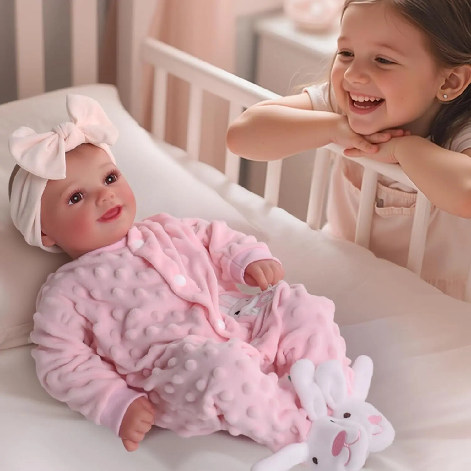 This life-size baby doll for girls spreads smiles with its charming, ever-smiling face. It's like having a perpetual ray of sunshine in your child's playtime. Perfect for 3+ years old, it's an ideal gift for any occasion. 🌞