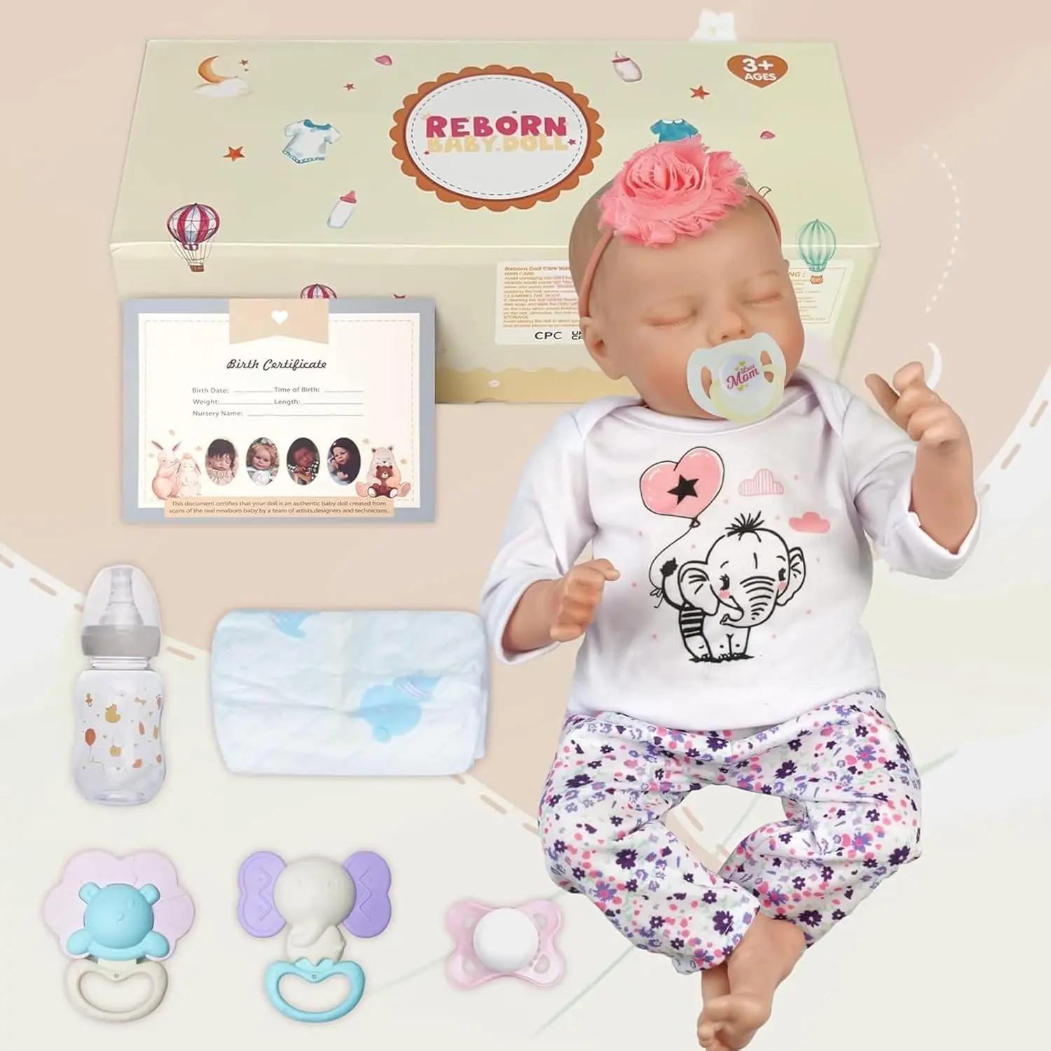 ·What You Get: 1 x Baby doll, 1 x Nursing bottle, 1 x Magnetic pacifier, 1 x Birth card, 1 x Clothes set as pictured and 1 x Gift Box