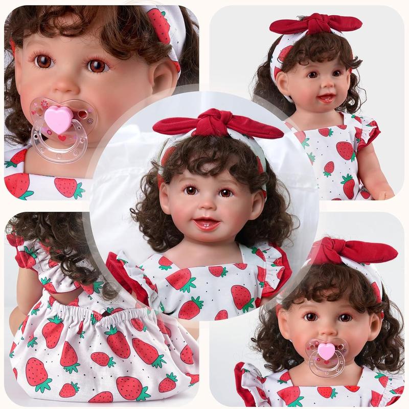 5. BABESIDE 3-Piece Reborn Baby Doll Clothing Set for 17-22 Inch Dolls Baby Doll Outfits & Accessories Clothes for Dolls with Strawberry Pattern Perfect for Reborn Doll Dress-Up Play Christmas Gift