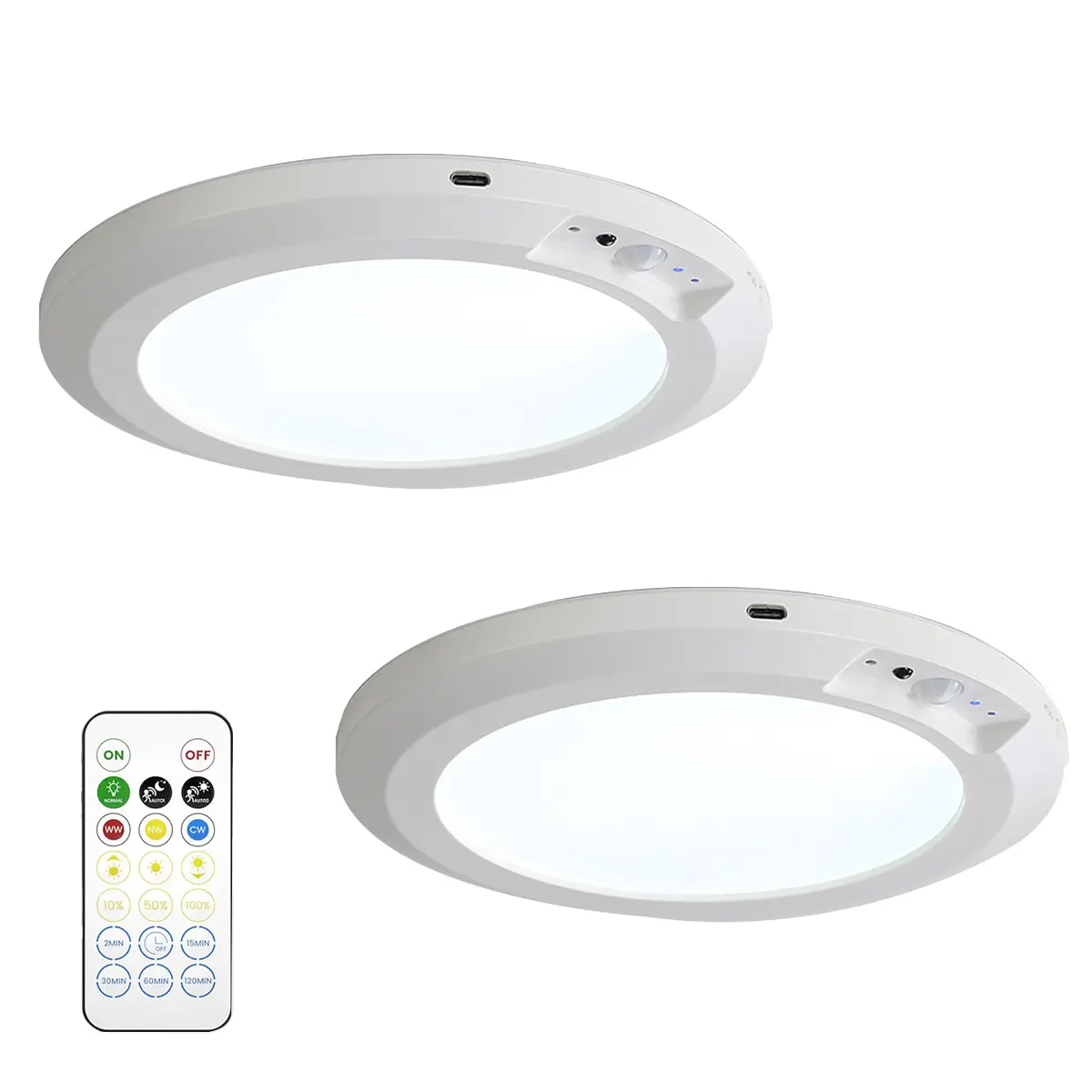 2-Pack Rechargeable Ceiling Light, 3 Color Modes, Motion Sensor with Remote, Wireless Battery-Operated Magnetic LED Lights for Shower, Closet, Pantry, Shed, Hallway, Porch, Garage