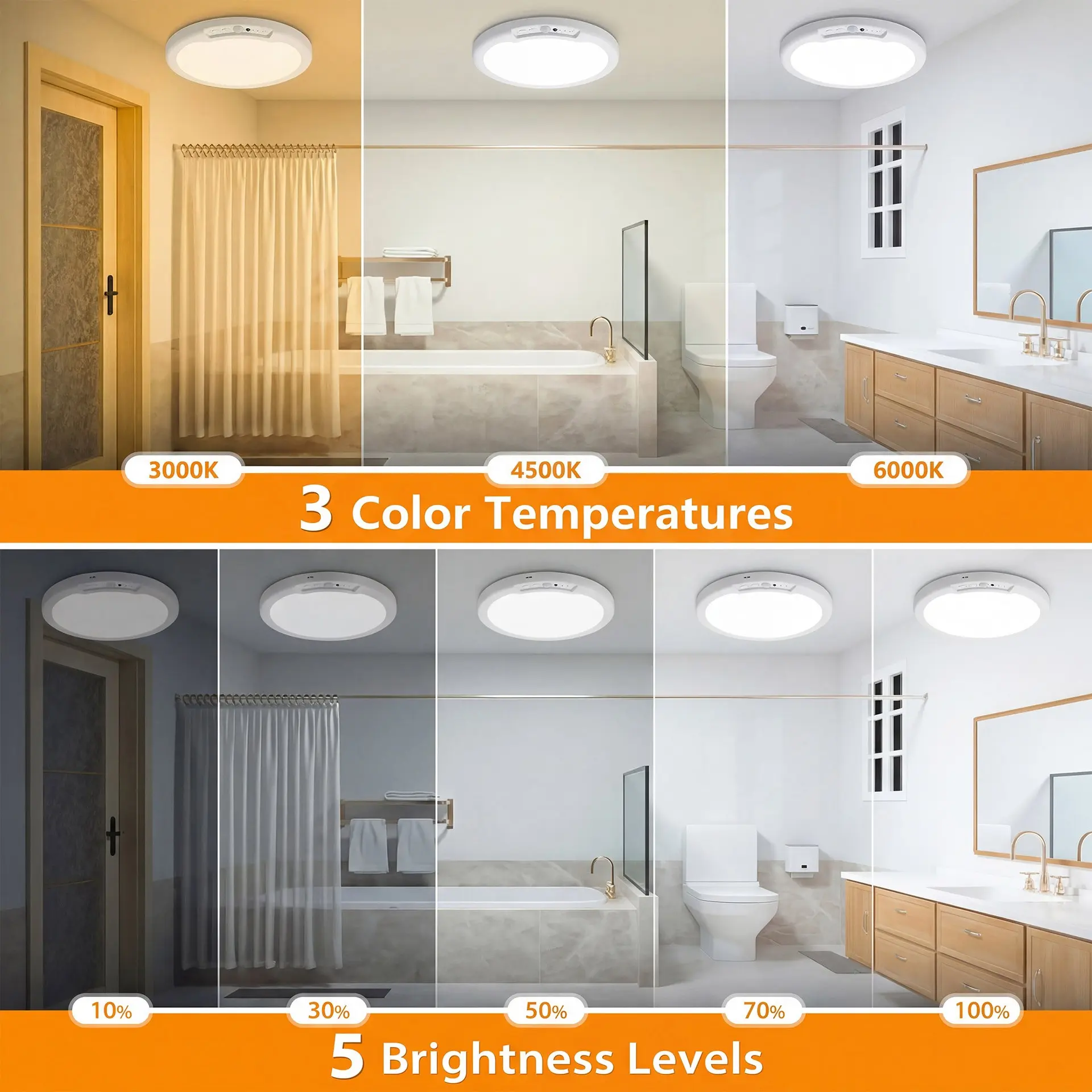 2 Pack Rechargeable Ceiling Lights with Remote Wireless Battery Operated Motion Sensor Waterproof Shower Lighting, 3CCT & Dimmable Stick On Closet Overhead for Pantry Living Room Renter Friendly
