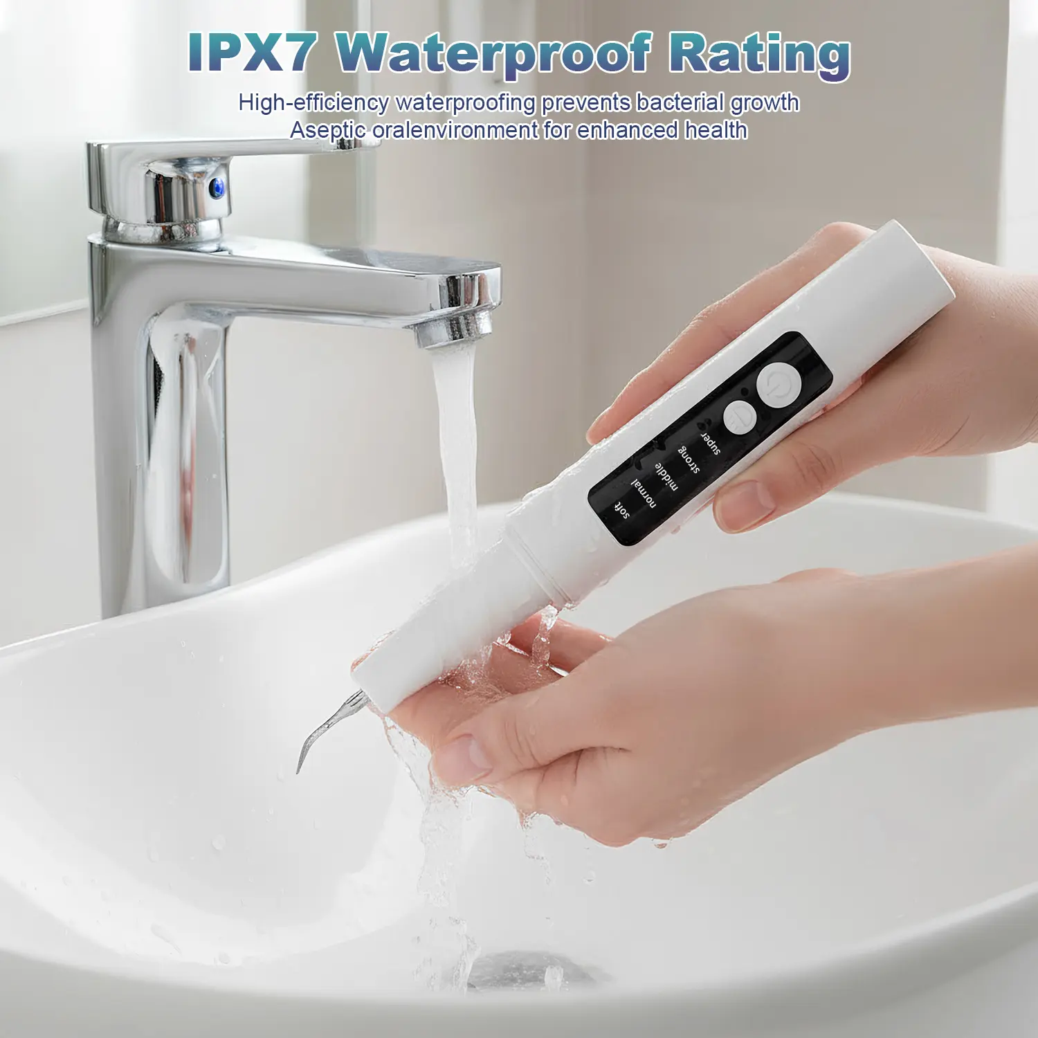 5 Adjustable Cleaning Modes: Features Soft (sensitive teeth), Normal (daily plaque removal), Middle (basic stain care), Strong (residual stain cleaning), and Super (deep removal for tartar/smoke/tea stains) to fit all oral needs.