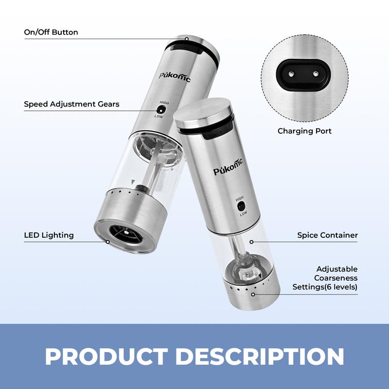 PUKOMC Rechargeable Salt & Pep#practicalhomegoods #homehacksessentials #tvgadgets #toolloversmusthave #kitchesessentials