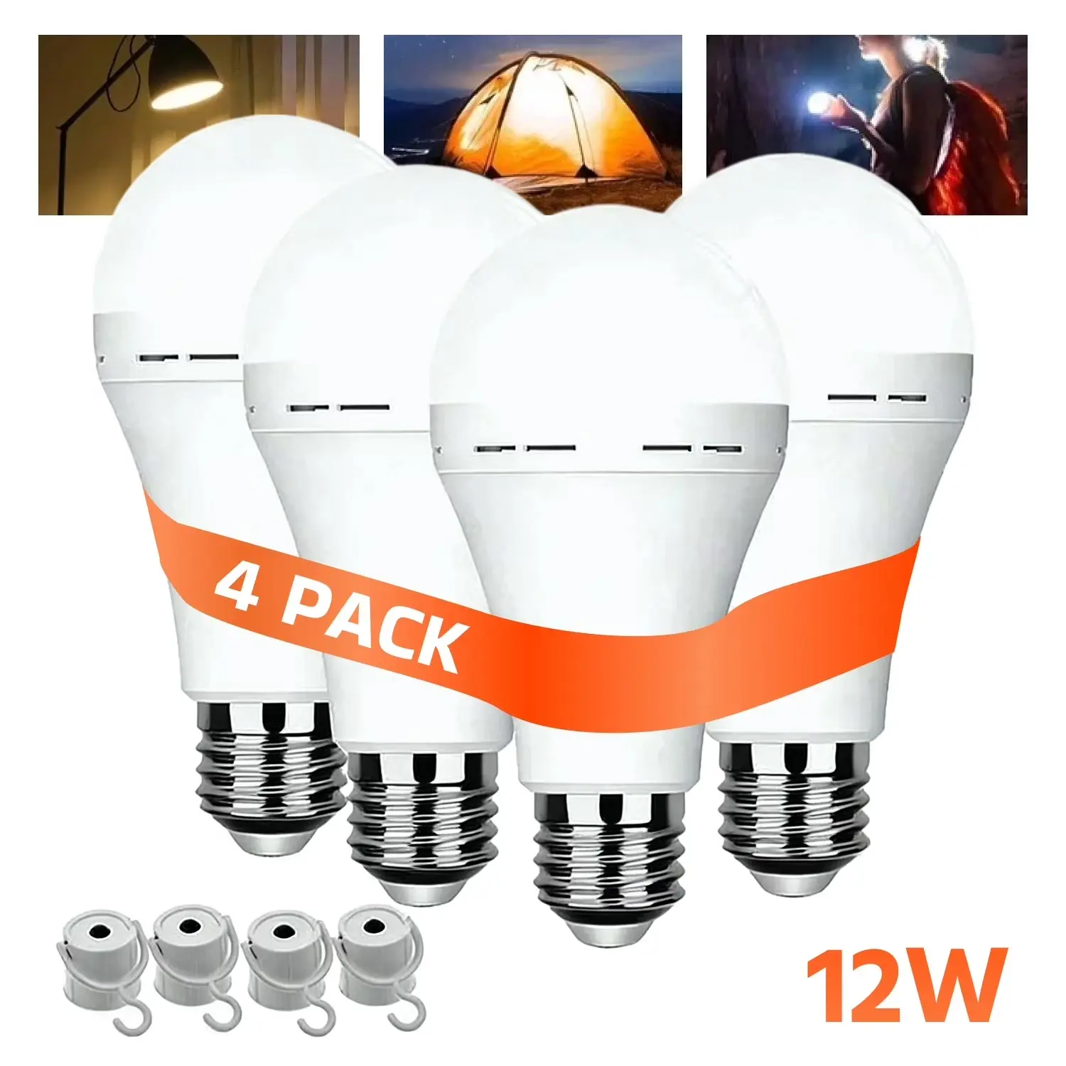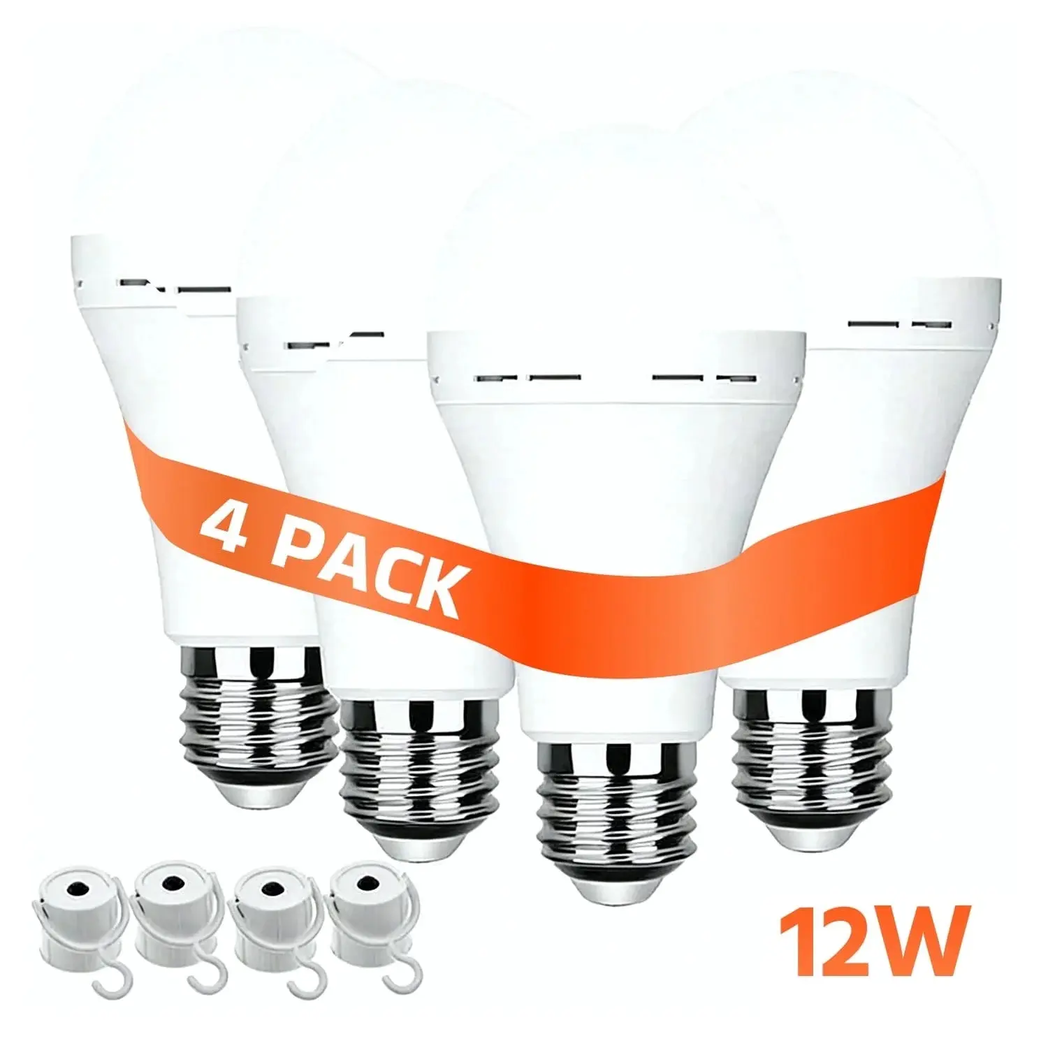 4 Pack Rechargeable Emergency Light Bulbs Battery Powered LED Light Bulb E27 12W 60W Equivalent for Home Power Outage Camping