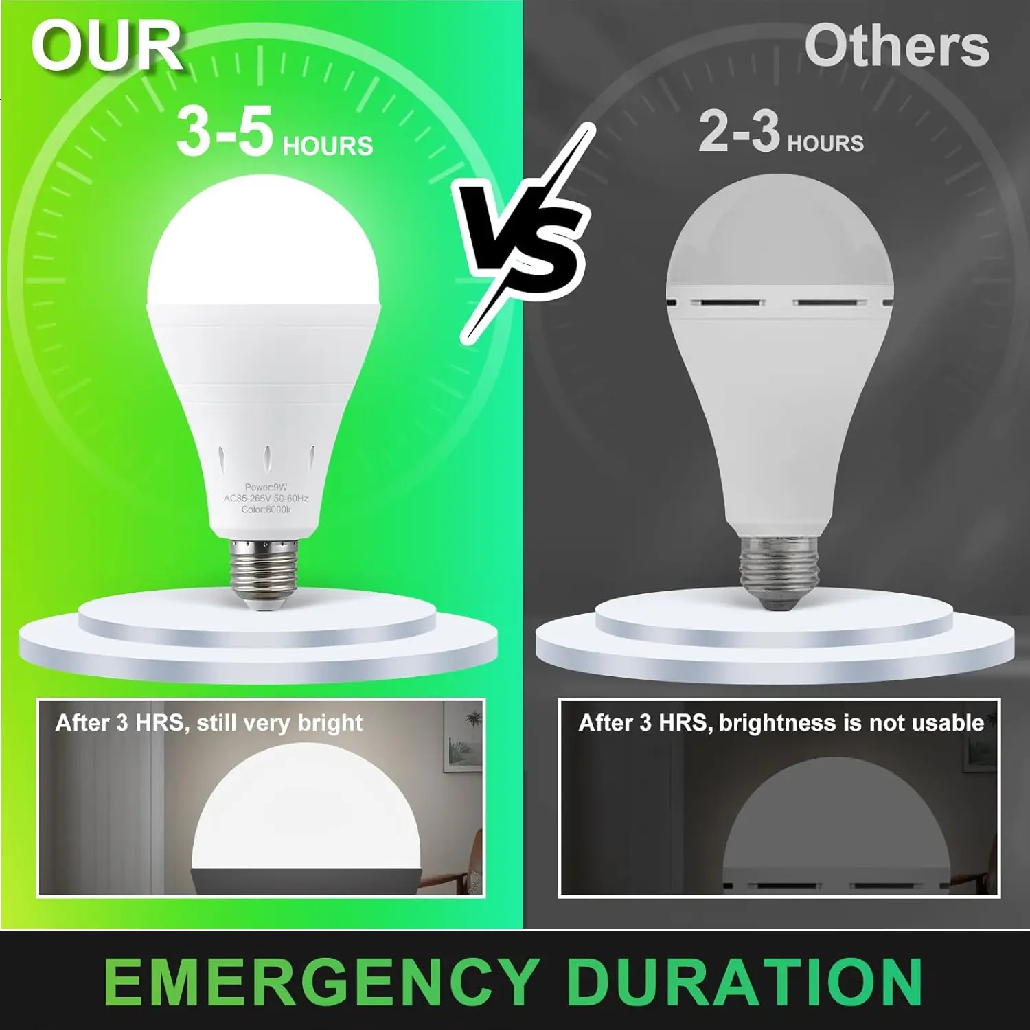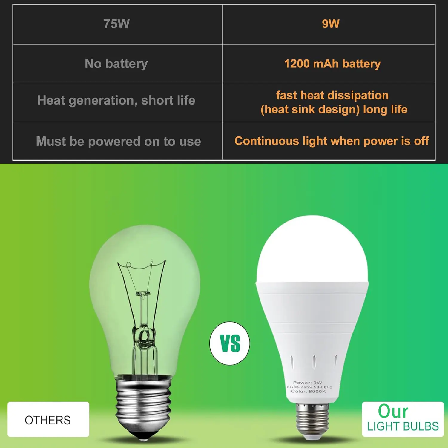 OMG! These bulbs are amazing, I have outages in my area quite a bit. these bulbs lights my whole house up and I have no even charge them up yet , wow what a great buy you will be glad that you got them.