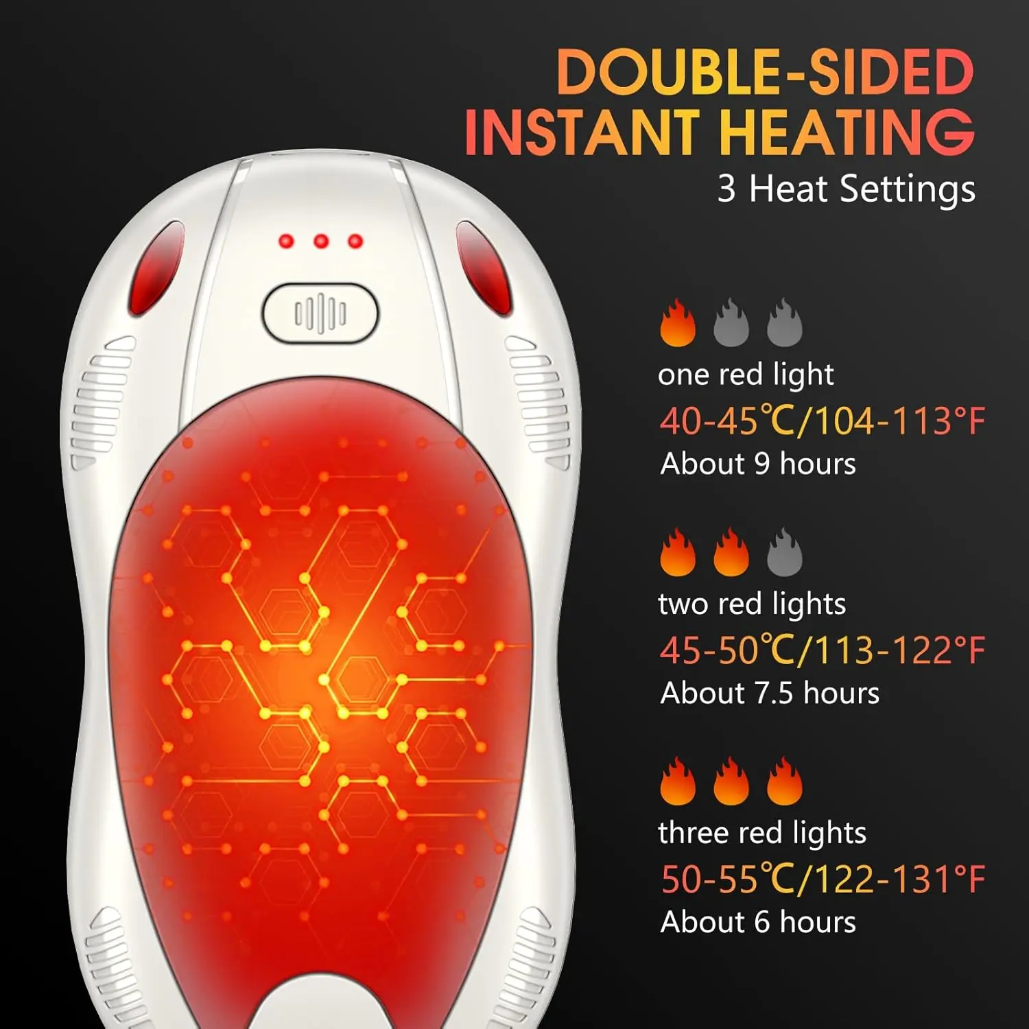 Β·Magnetic Dual-Sided Warmth: Features a convenient magnetic design for hands-free use. Experience instant and consistent heat from both sides simultaneously, perfect for warming hands or providing targeted muscle comfort.