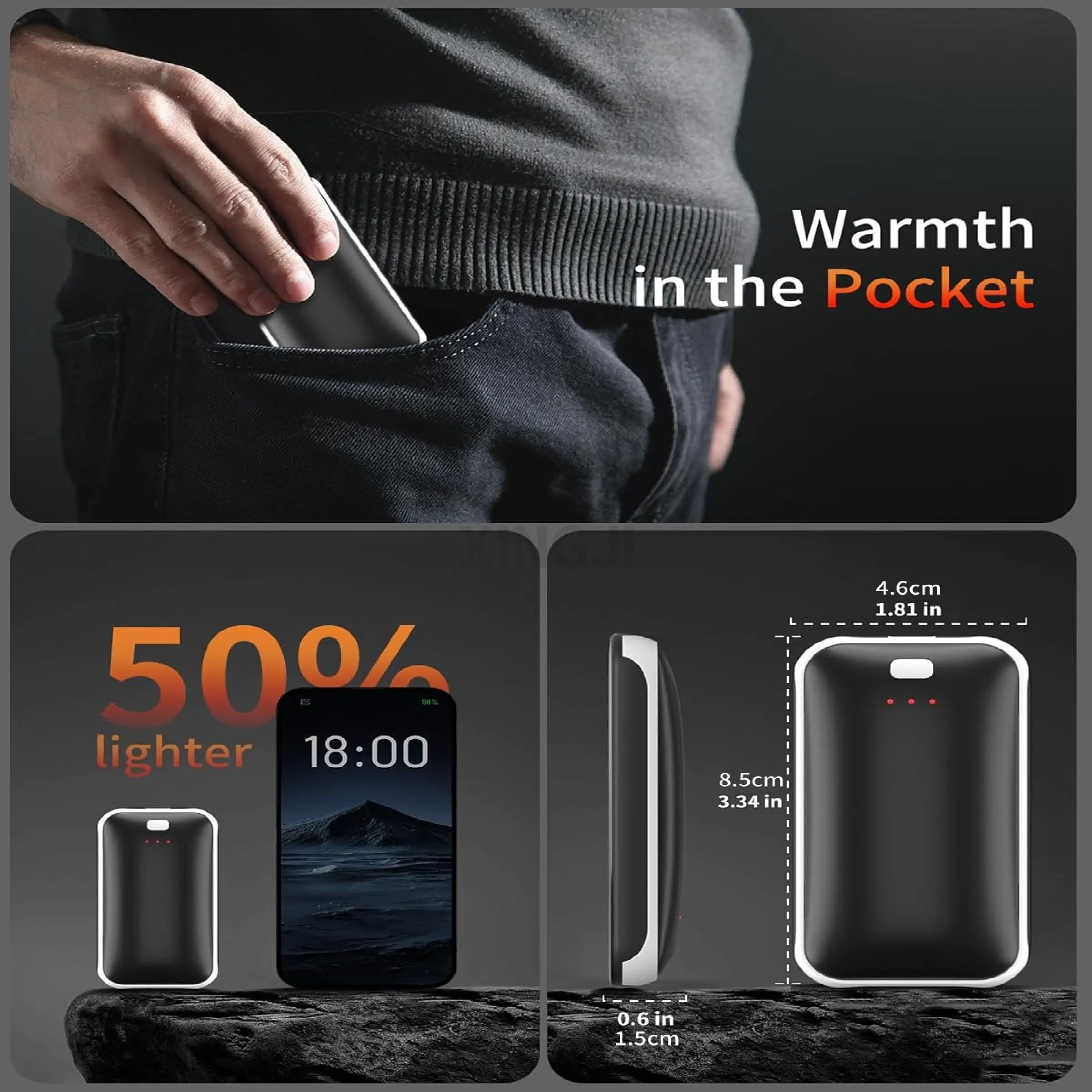 ·Lightweight and Pocket-Friendly: The rechargeable hand warmers are super slim and lightweight, measuring 0.62 inches and weighing only 0.123lb—just 30% of the weight of traditional models.