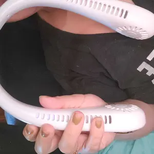 Ā·Safe and Cool Surround Air Supply: This novel neckfan, no need to wave your hands, just wear it around yourneck to send air. Wingless design, safe for children andthe elderly. lt can be used for the entire face whereveryou are, whether at a concert, watching a basketballgame, working outdoors, on a cruise, on air travel, orworking out at the gym. lt can generate enough air tokeep you cool all the time.
