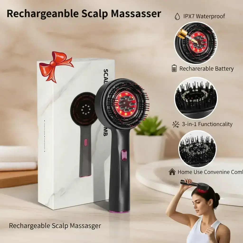 3-In-1 Scalp Massager & Hair Oil Applicator, Ipx7 Waterproof Design, Rechargeable Electric Head Massager Comb for Home Scalp Care #mensgrooming #blowdryer #shavingaccessories #hairdryerbrush #viralautomatichaircurler #menshairproducts #selfcareproductsmusthaves #womensshaver #massagerelectric #hairstylingtool